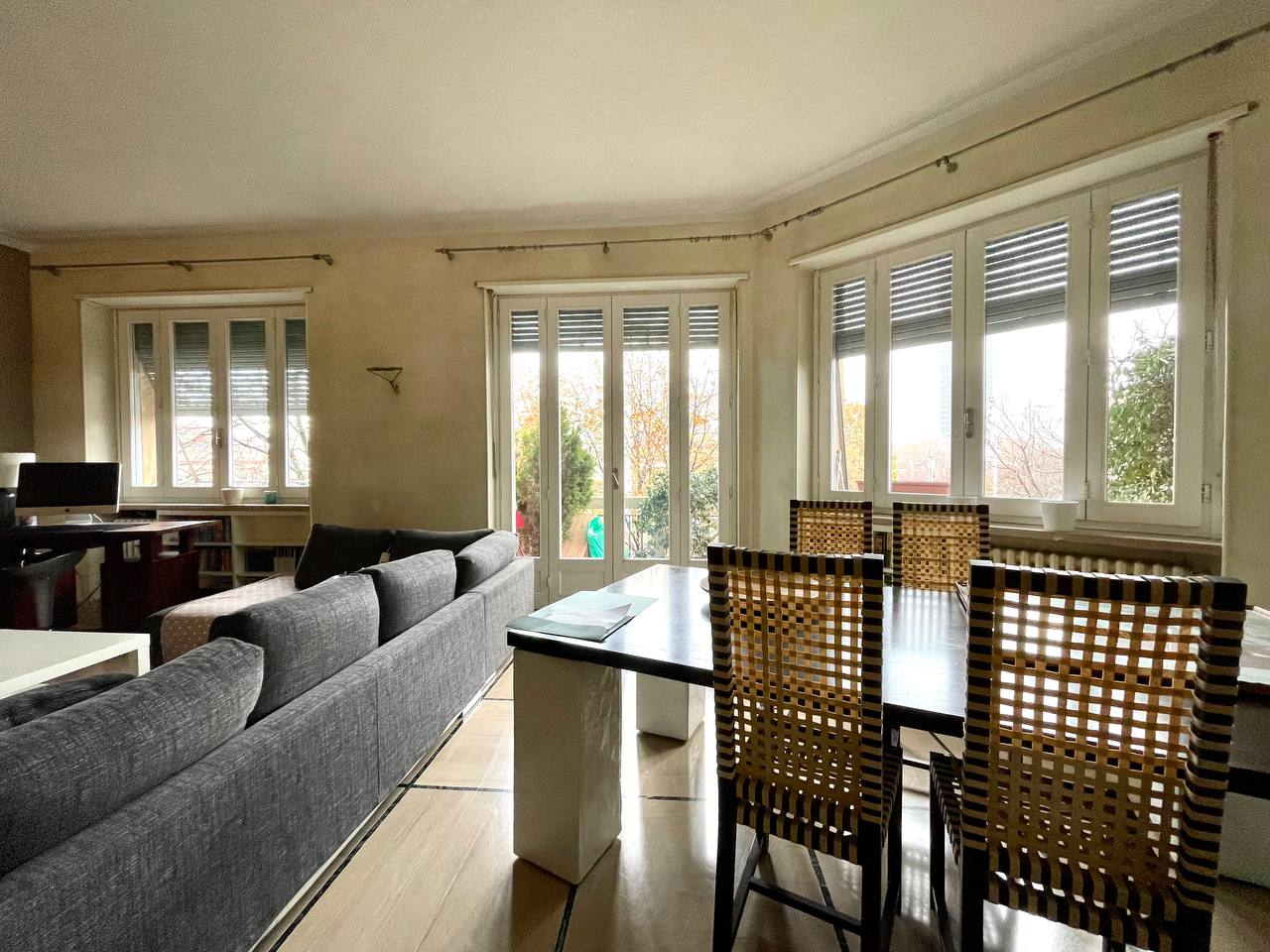 In elegante palazzina d'epoca, sito al terzo piano con ascensore, appartamento composto da ampio ingresso, soggiorno angolare con balcone, cucina abitabile, quattro camere, due bagni e disimpegni. L'alloggio è dotato di quattro balconi in totale. Completa la proprietà una cantina al primo piano interrato e una soffitta al piano quinto. Tre arie, affaccio sia interno che esterno su Corso Stati Uniti, molto luminoso. Alloggio in ottime condizioni interne, dotato di sistema di condizionamento installato l'anno passato, infissi con doppio vetro, parquet originali. Utilizzabile sin da subito. Stabile ben curato, oggetto di recentissimi interventi di ristrutturazione e dotato di servizio portineria intera giornata. Zona centrale e strategica per la vicinanza a Porta Susa, alla metropolitana e a tutti i servizi. Categoria catastale A/2, rendita catastale 2.602,94 euro.
