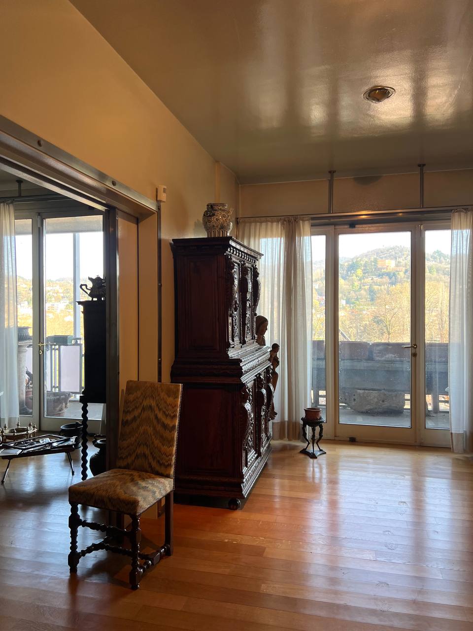 Nel prestigioso complesso condominiale Orchidea, tra Corso Massimo d’Azeglio e Corso Vittorio Emanuele II, elegante appartamento situato al quarto piano di uno stabile signorile servito da ascensore. L'immobile si compone di ingresso, salone doppio, cinque camere, cucina abitabile con ampio ripostiglio, tre bagni finestrati e disimpegni. Punto di forza della proprietà sono gli spazi esterni: un lungo terrazzo affacciato su Corso Massimo d’Azeglio offre una piacevole vista panoramica sul Parco del Valentino e sulle colline circostanti, mentre sul lato interno si trovano due balconi, di cui uno particolarmente ampio e ideale come zona stenditoio. La superficie catastale totale, escluso balconi, terrazzi ed aree scoperte, risulta pari a 244 m². Gli ambienti, anche grazie agli infissi a tutta altezza e alla doppia esposizione est-ovest, sono ampi e luminosi. Le stanze sono dotate di rifiniture di pregio e i pavimenti sono in parquet. Completa la proprietà una cantina al piano interrato e volendo, con acquisto separato, nello stesso stabile, sono disponibili due box auto al prezzo di 35.000,00 euro ciascuno. Lo stabile, edificato negli anni ’60, si presenta in ottime condizioni ed è caratterizzato da eleganza e cura dei dettagli; dispone di un curato giardino condominiale ornamentale e di servizio di portineria attivo per l’intera giornata. Categoria catastale A/1, rendita catastale Euro 5.254,95.