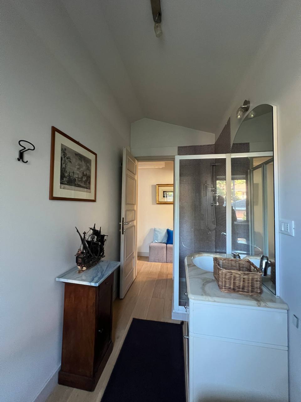 Gli spazi interni sono accoglienti e ben distribuiti: un ampio soggiorno con camino, perfetto per momenti di relax, una zona pranzo con cucina a vista, due camere da letto, un bagno finestrato e una pratica lavanderia. L’abitazione, completamente arredata con uno stile curato ed elegante, regala una piacevole sensazione di quiete e privacy, con affacci panoramici sul verde circostante.