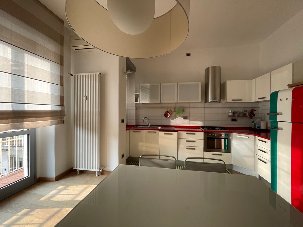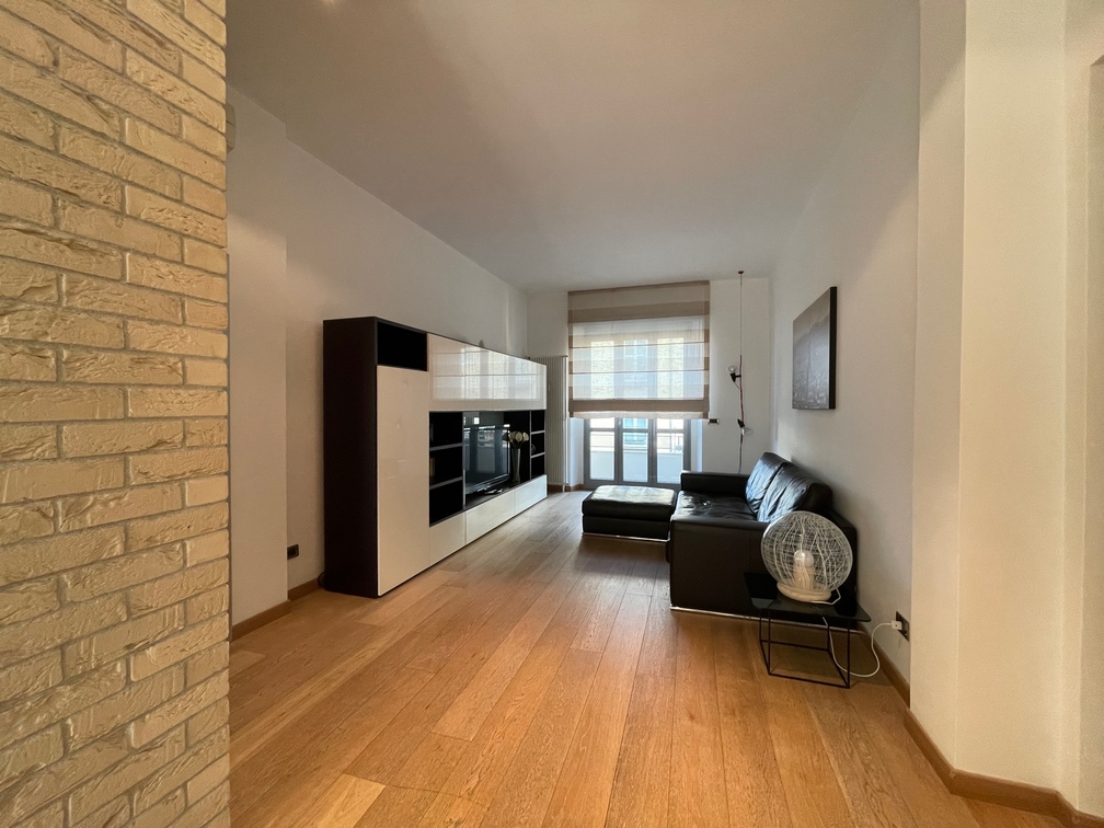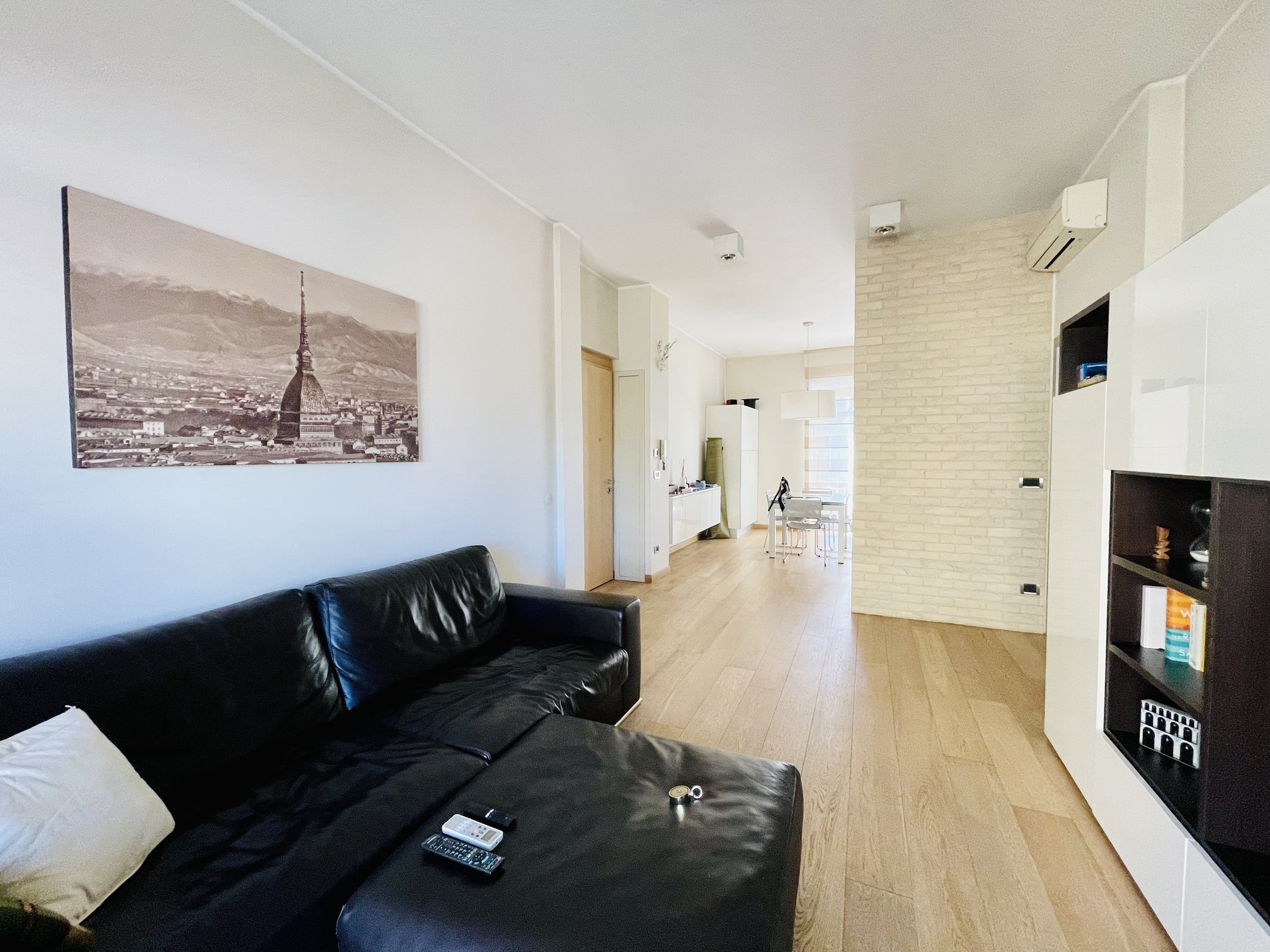 Appartamento sito al secondo piano con ascensore di uno stabile signorile anni '60, composto da ingresso su soggiorno living con cucina, una camera, un bagno finestrato e disimpegni, oltre ad una cantina al piano interrato. Presenza di due balconi. L'alloggio viene affittato completamente arredato con mobili moderni di ottima qualità, come si vede in foto, e si presenta in ottimo stato interno. Doppia esposizione est-ovest. Affaccio panoramico su Piazza Gran Madre. Presenza di impianto di condizionamento in tutte le stanze. Canone mensile pari a 1300,00 euro + 170,00 euro di spese condominiali (riscaldamento centralizzato a parte).