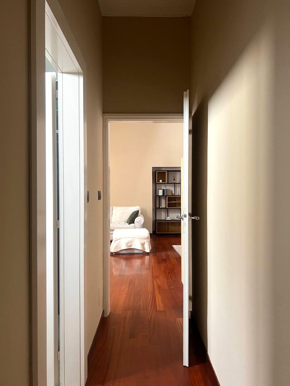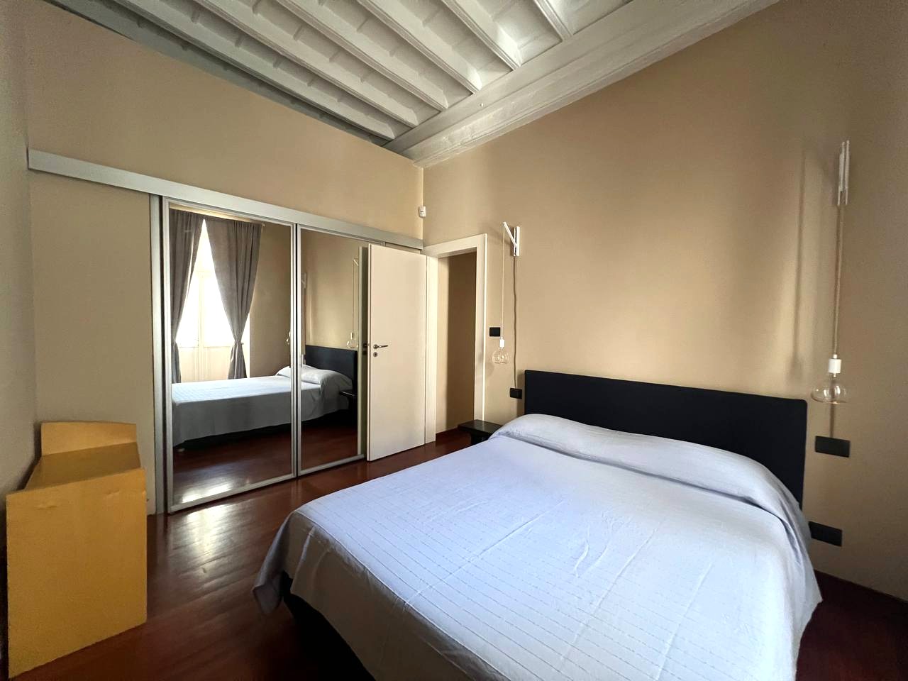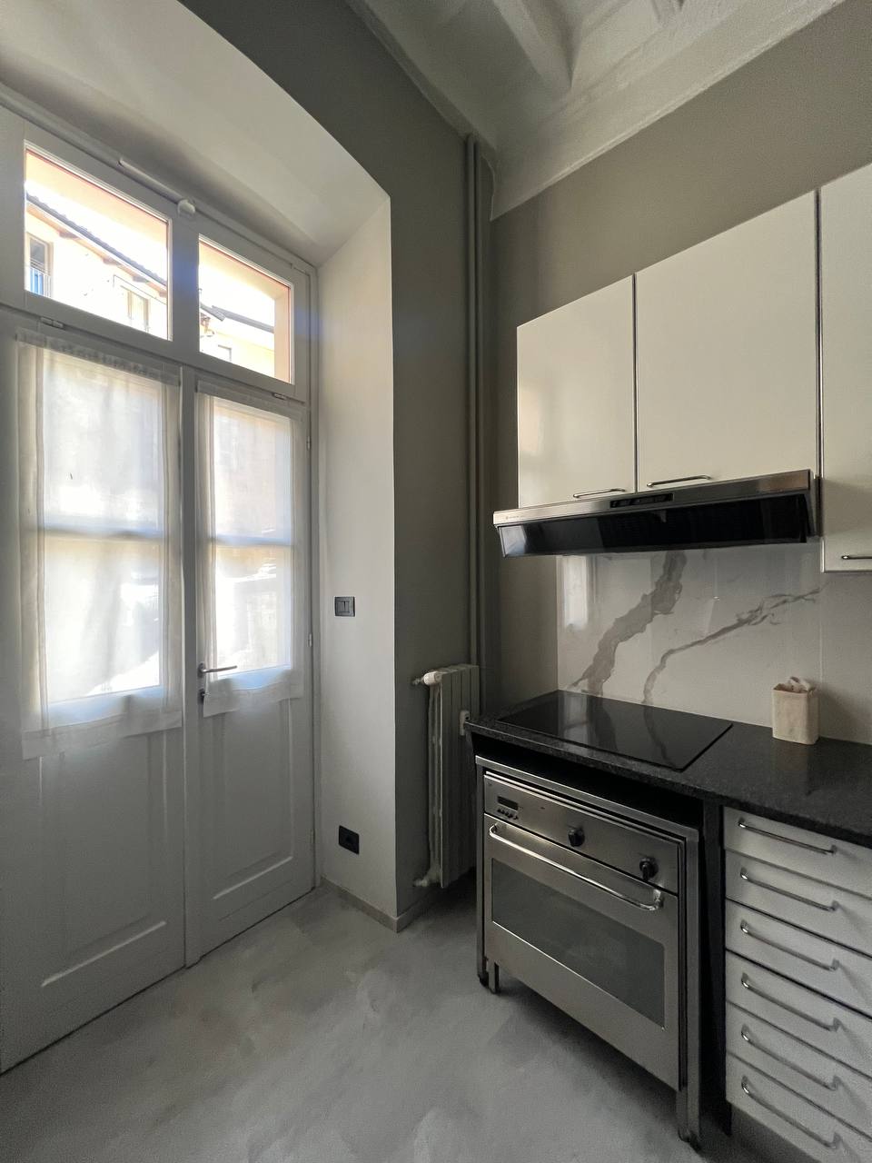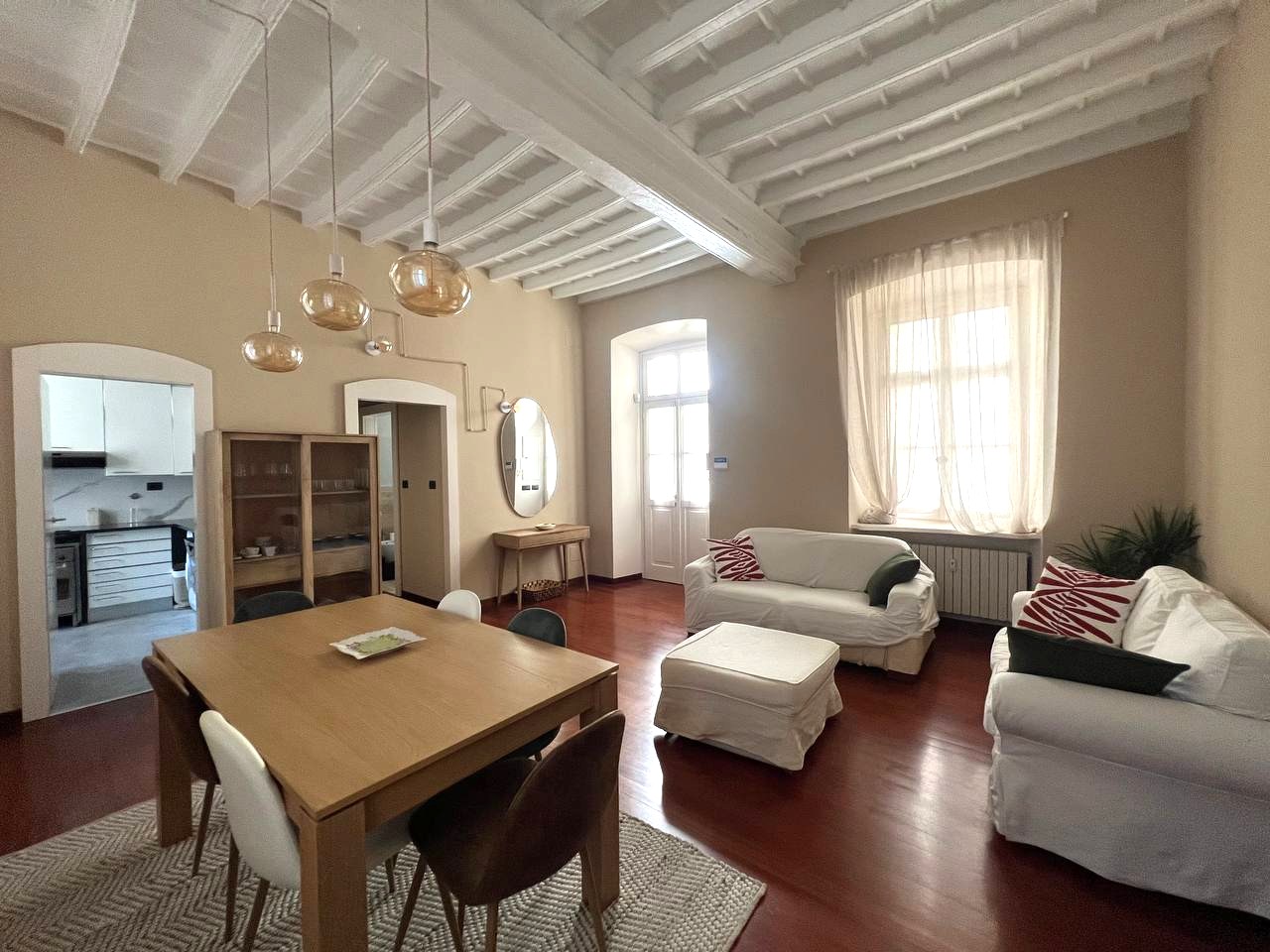 Appartamento sito al numero uno di Piazza Vittorio Veneto, nel cuore del centro storico di Torino, nell'interno cortile dello stabile, al secondo piano con ascensore, composto da ingresso su ampio soggiorno, cucina, camera con spaziosa cabina armadio e bagno finestrato. L'alloggio viene affittato completamente arredato ed è stato recentemente ristrutturato e ammodernato. Presenza di due lunghi balconi su ogni lato dell'alloggio, ingresso da un ballatoio privato. Armadi a muro molto rifiniti. Palchetti ovunque tranne in bagno e cucina. Molto silenzioso. Canone mensile 1.100,00 euro + 120,00 euro al mese di spese condominiali (utenze e riscaldamento esclusi). L'alloggio viene affittato per breve periodo (massimo un anno).