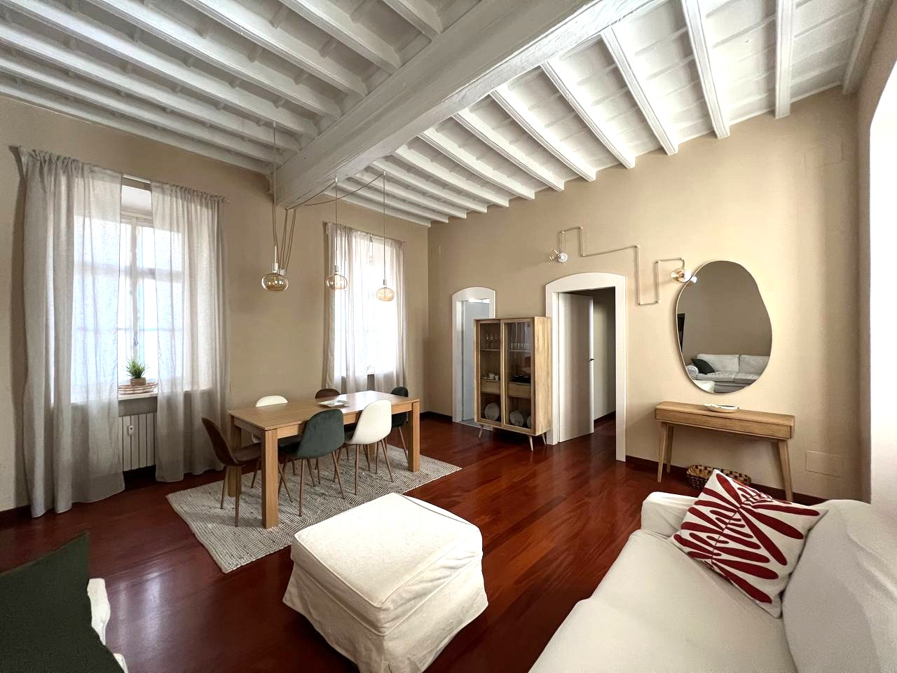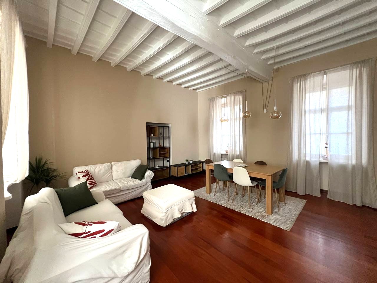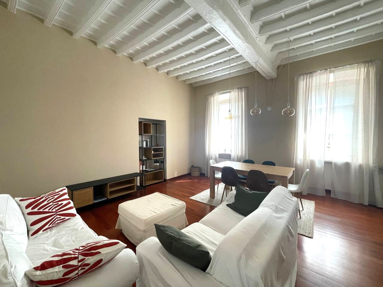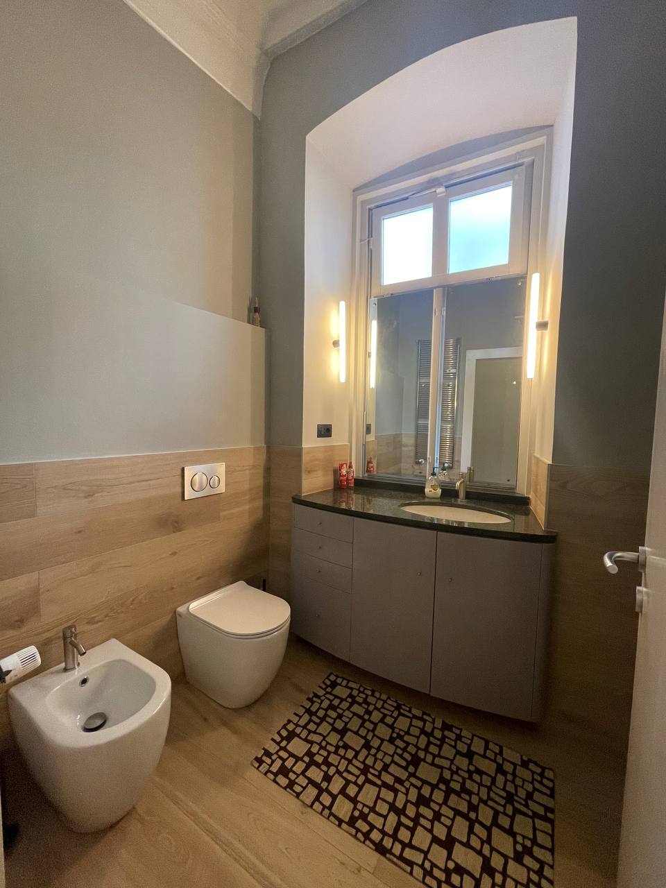 Appartamento sito al numero uno di Piazza Vittorio Veneto, nel cuore del centro storico di Torino, nell'interno cortile dello stabile, al secondo piano con ascensore, composto da ingresso su ampio soggiorno, cucina, camera con spaziosa cabina armadio e bagno finestrato. L'alloggio viene affittato completamente arredato ed è stato recentemente ristrutturato e ammodernato. Presenza di due lunghi balconi su ogni lato dell'alloggio, ingresso da un ballatoio privato. Armadi a muro molto rifiniti. Palchetti ovunque tranne in bagno e cucina. Molto silenzioso. Canone mensile 1.100,00 euro + 120,00 euro al mese di spese condominiali (utenze e riscaldamento esclusi). L'alloggio viene affittato per breve periodo (massimo un anno).