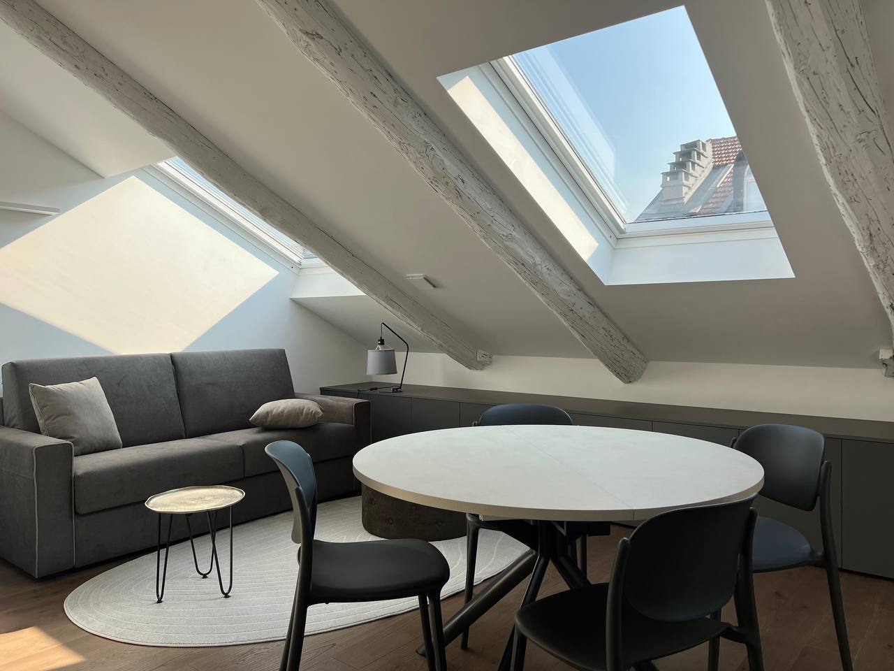 Appartamento su due livelli collegati da comoda scala interna, composto da ampio soggiorno living con cucina a vista, bagno, lavanderia/stireria e giardino al piano seminterrato e terreno (seminterrato lato lavanderia e terreno lato giardino), oltre a due camere, due bagni, veranda e soppalco con affaccio sul salone al piano terreno e rialzato (terreno lato camere, rialzato lato soppalco). Completa la proprietà un box auto doppio al piano terreno con accesso attraverso cancello e serranda elettrici. L'alloggio viene venduto così come si vede in foto, ancora allo stato grezzo, per lasciare al futuro acquirente libertà nella scelta delle finiture. Doppio accesso tramite porta blindata dal piano interrato e dal piano terra. Tripla esposizione a sud, est ed ovest, affaccio sia esterno che interno. Stabile in ottime condizioni poichè di recente costruzione.