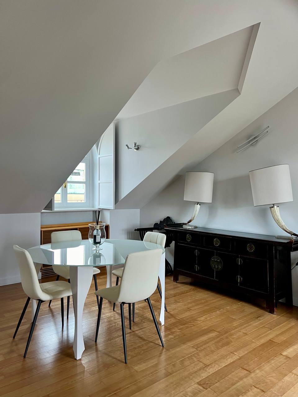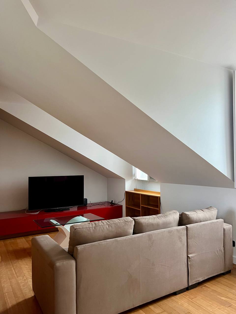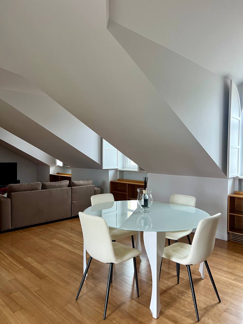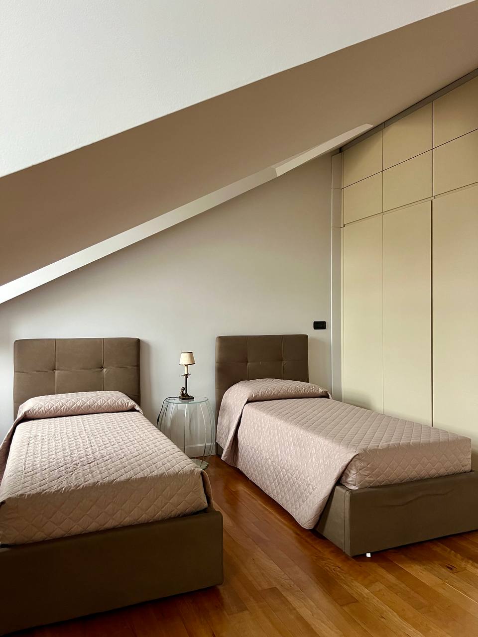 Appartamento sito all'ultimo piano di uno stabile signorile perfettamente curato nelle zone comuni, composto di ingresso su soggiorno living, cucina abitabile e attrezzata, due camere, due bagni e cabina armadio, oltre ad ampia terrazza che si affaccia sul tranquillo cortile interno. L'alloggio si trova all'ultimo piano mansardato ed è raggiungibile tramite ascensore e una breve rampa di scale da fare a piedi. L'alloggio viene affittato arredato e dispone di numerose armadiature a muro, sia nelle camere che nei disimpegni. Aria condizionata e riscaldamento autonomo. Doppia esposizione est-ovest e piano alto rendono l'alloggio particolarmente luminoso. Servizio di portineria intera giornata. Zona centralissima. Canone mensile pari a 3.000,00 euro + 180,00 euro al mese di spese condominiali. Disponibilità di due box auto singoli nello stabile aggiungendo 200,00 euro al mese per ciascuno.