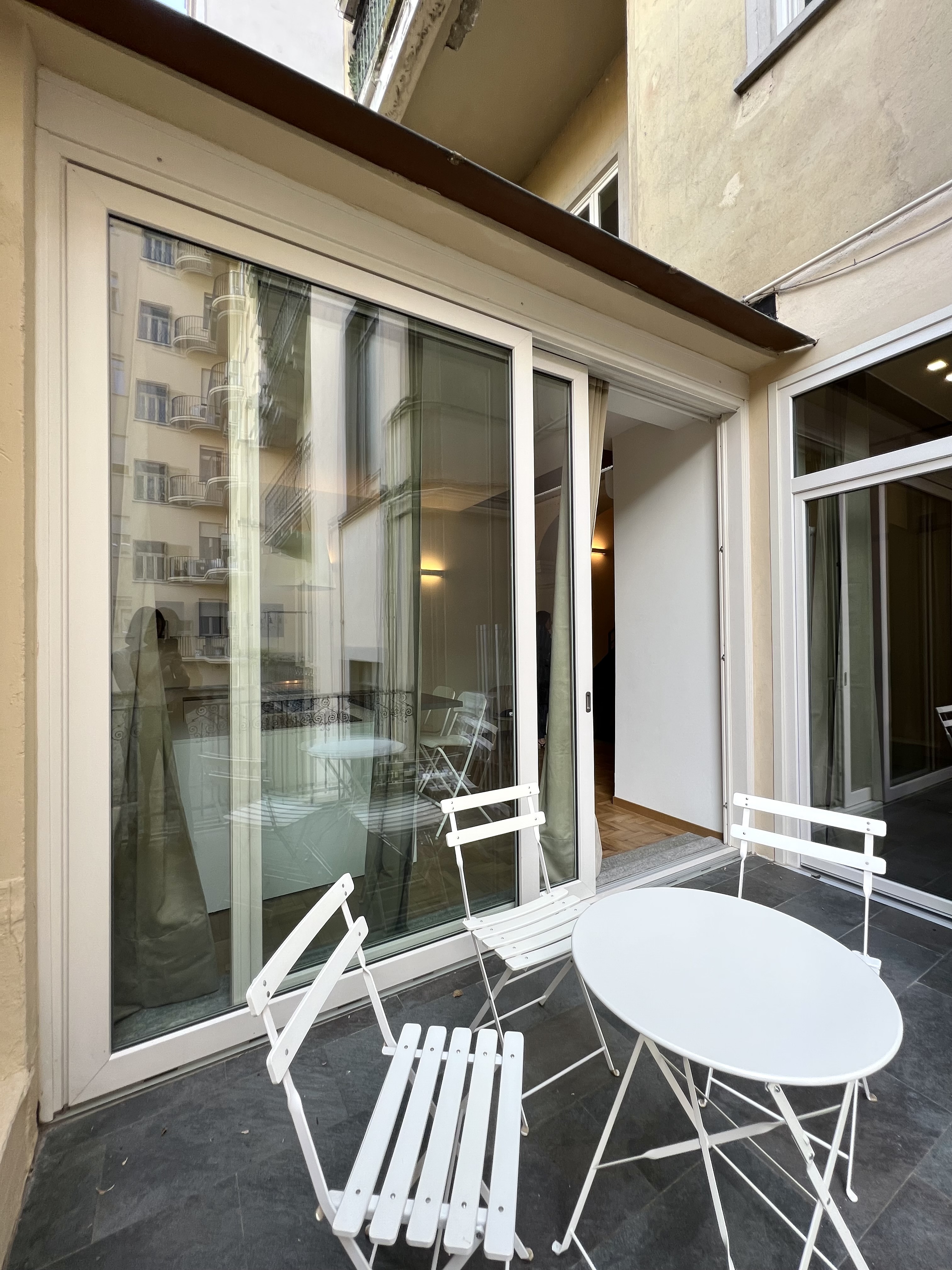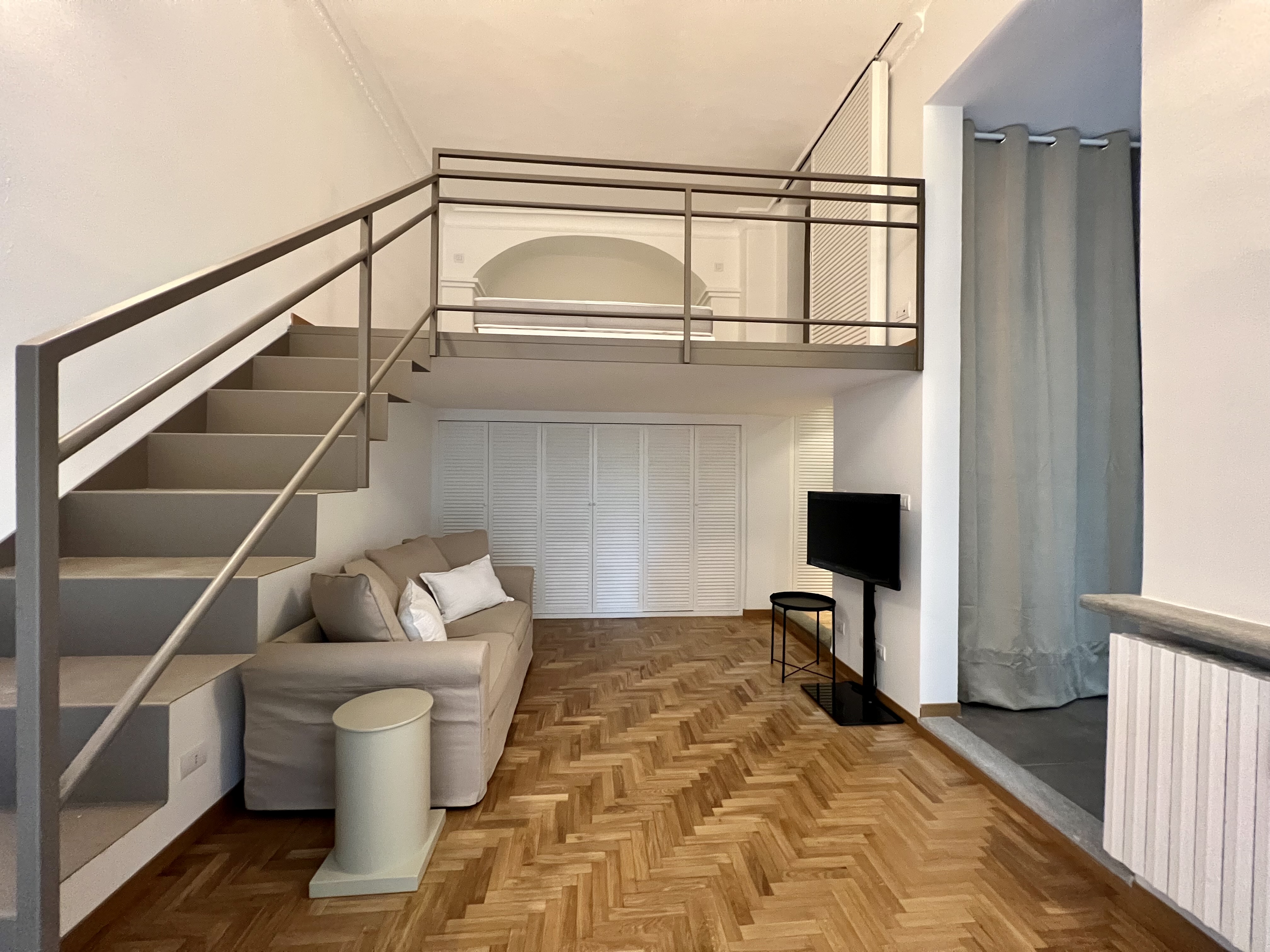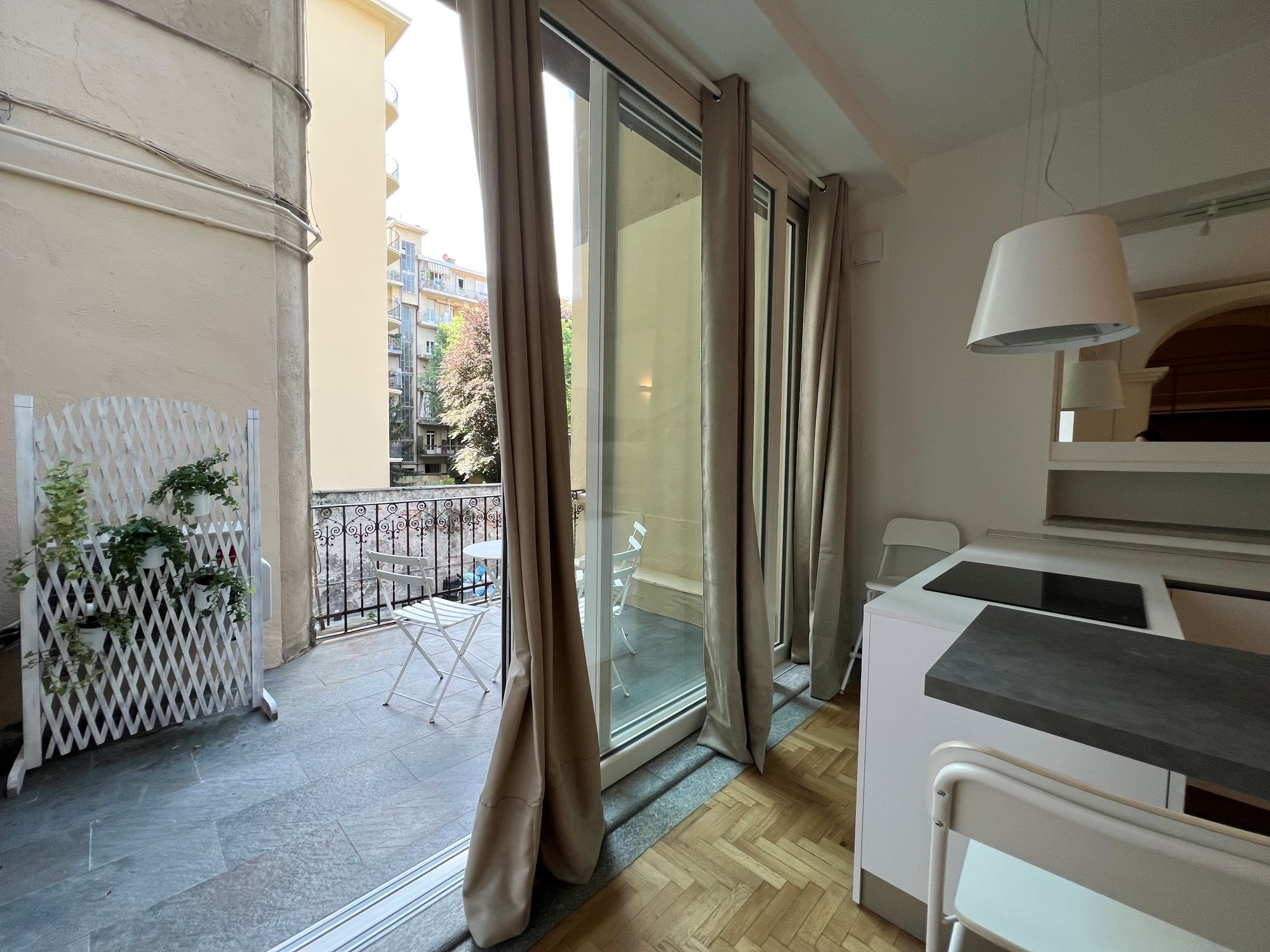 Appartamento completamente ristrutturato e arredato, disposto su due livelli. L’ingresso conduce a un luminoso soggiorno living con cucina a vista, dal quale si accede a un delizioso terrazzo. Completano il piano un bagno con antibagno e un pratico angolo lavanderia. Al livello superiore, si trova un soppalco con cabina armadi realizzata su misura in muratura. Il terrazzo, di circa 10 mq, gode di un affaccio sul tranquillo cortile interno del palazzo, garantendo privacy e silenzio. L’immobile è inserito in un elegante stabile d’epoca, molto ben tenuto e dotato di ascensore. È disponibile, con acquisto separato, un posto auto all’interno dello stabile al prezzo di € 30.000. La posizione è particolarmente strategica: centralissima, a pochi passi dalla stazione ferroviaria e metropolitana di Porta Nuova e nelle immediate vicinanze delle aree verdi del Parco del Valentino.