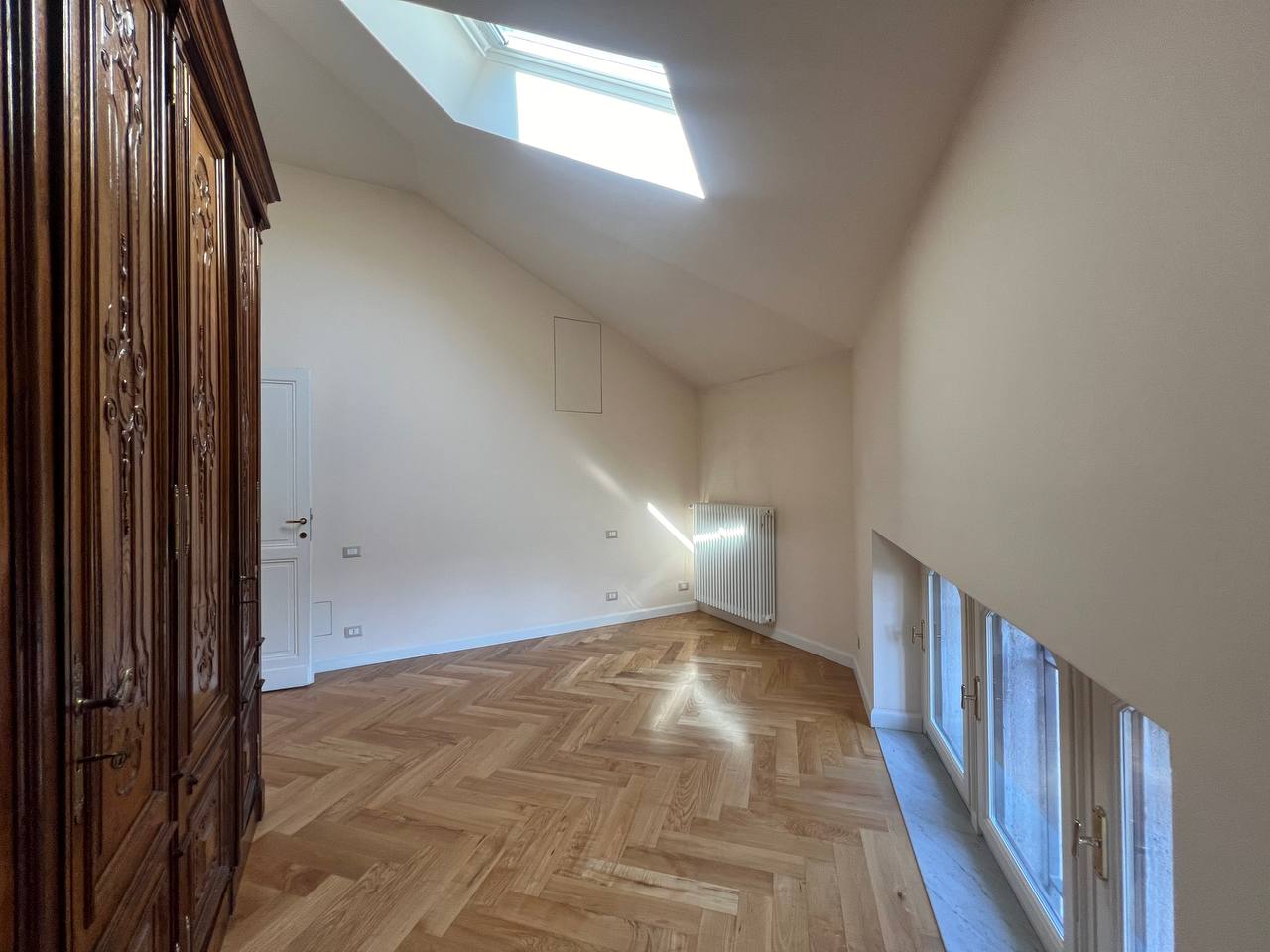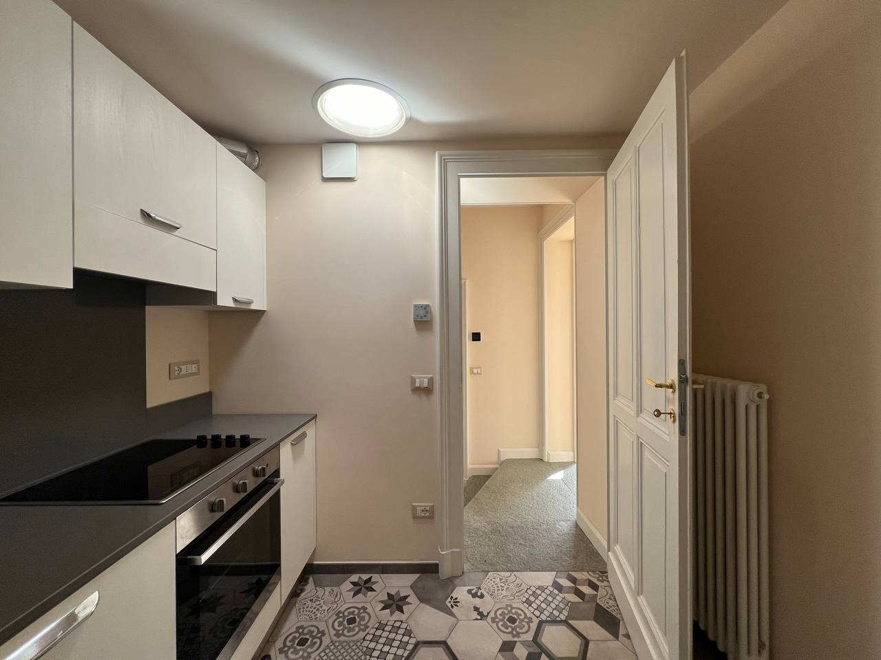 Appartamento di recente ristrutturazione sito nell'isola pedonale della Crocetta, quartiere prestigioso e residenziale della città, al terzo piano con ascensore di uno stabile d'epoca, composto da ingresso, salone, cucina arredata, due camere, un bagno ed un ulteriore bagno ospiti. L'alloggio è stato ristrutturato di recente e presenta pavimenti in parquet nuovi, impianto elettrico a norma e impianto di condizionamento. Viene affittato arredato solo di cucina e di un armadio in una camera da letto. Classe energetica molto elevata (A1). Stabile ben curato con servizio di portineria. Canone mensile pari a 1500,00 euro + 200,00 euro al mese di spese condominiali. Disponibile da subito.