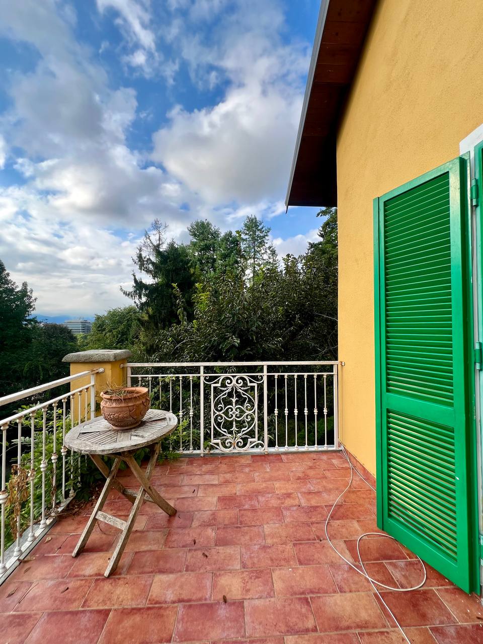 Appartamento in villa bifamiliare con giardino e due terrazze in Corso Moncalieri, libero su quattro lati, composto da ingresso, salotto con terrazzo, cucina e zona lavanderia al piano terreno, tre camere di cui una con terrazzo, e due bagni al primo piano, oltre ad un unico locale con bagno al piano mansarda. Completano la proprietà il giardino ad uso esclusivo e un patio esterno dove è possibile posteggiare auto e motorini. L'appartamento viene affittato arredato solo di cucina, il resto del mobilio presente in foto appartiene all'inquilina uscente. Libero dal primo gennaio 2026. Canone mensile 3.100,00 euro, spese escluse. L'immobile si inserisce in un complesso più grande dove sono presenti un'unità immobiliare principale e una dependance, oltre alla villa bifamiliare dove si inserisce l'appartamento in oggetto. Il tutto è circondato da un ampio parco condominiale.