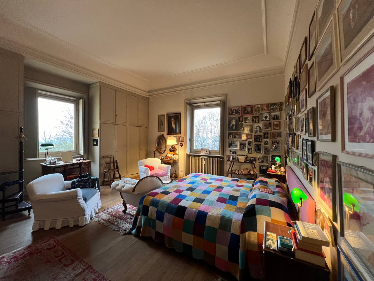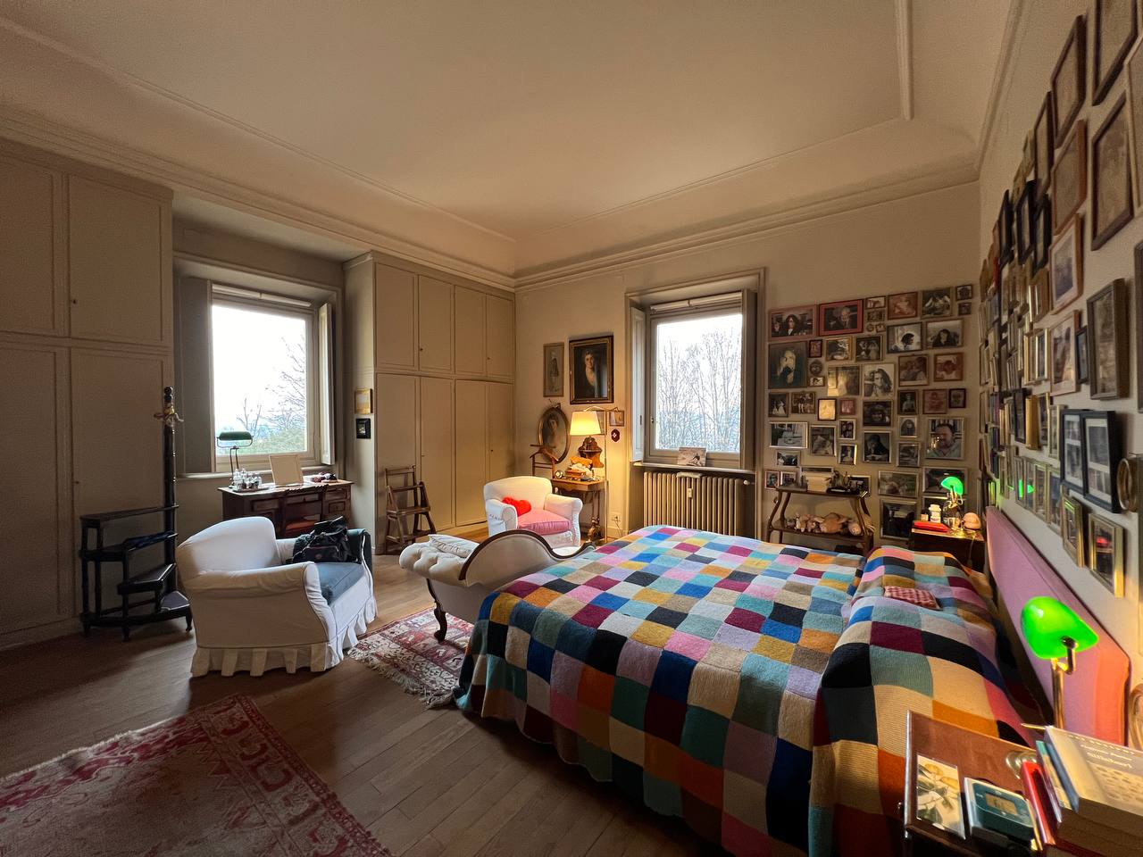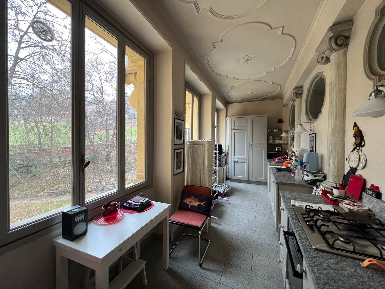 Appartamento in villa ottocentesca in Corso Moncalieri 167, nella precollina torinese, all'altezza del Ponte Isabella, al secondo piano senza ascensore, composta da ingresso, salone doppio, cucina arredata, due camere da letto, due bagni completi e disimpegni con armadi a muro. L'alloggio viene affittato arredato solo di cucina e armadi a muro, il mobilio presente in foto verrà rimosso in quanto appartenente all'inquilino uscente. L'alloggio sarà disponibile a partire da marzo. Contesto signorile e tranquillo, immerso nel verde della proprietà. E' possibile passeggiare nel parco o fermarvisi per la lettura di un libro, ma non è utilizzabile per barbeque e/o cene e feste. Presenza di due posti auto esterni inclusi nel prezzo. Canone mensile pari a 1.800,00 euro (spese condominiali e riscaldamento centralizzato esclusi).