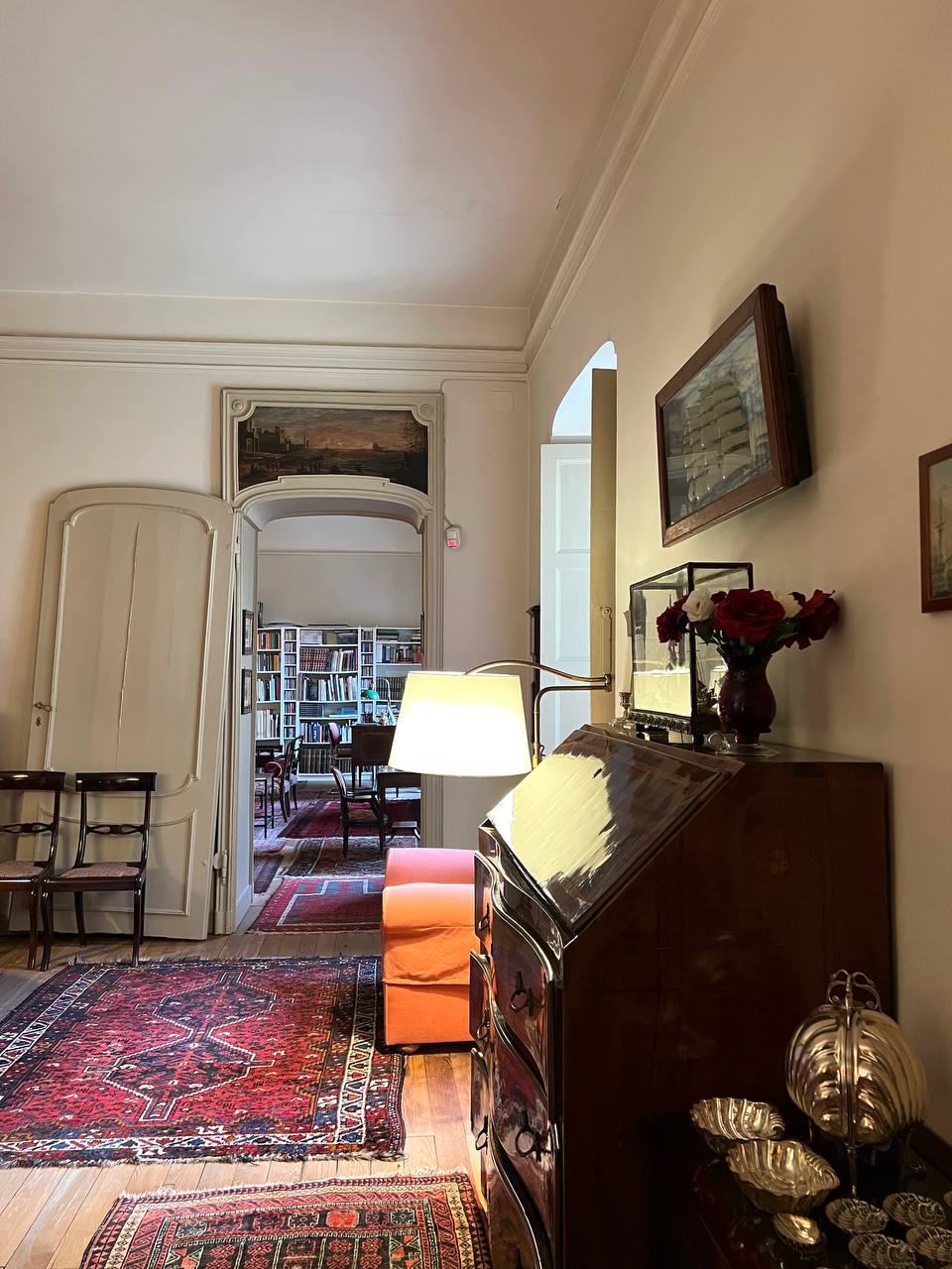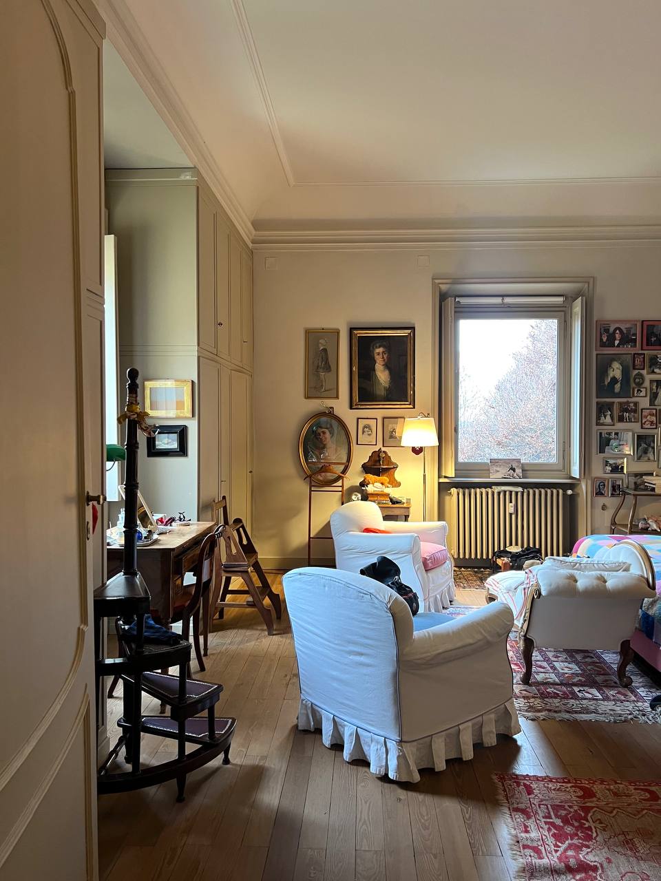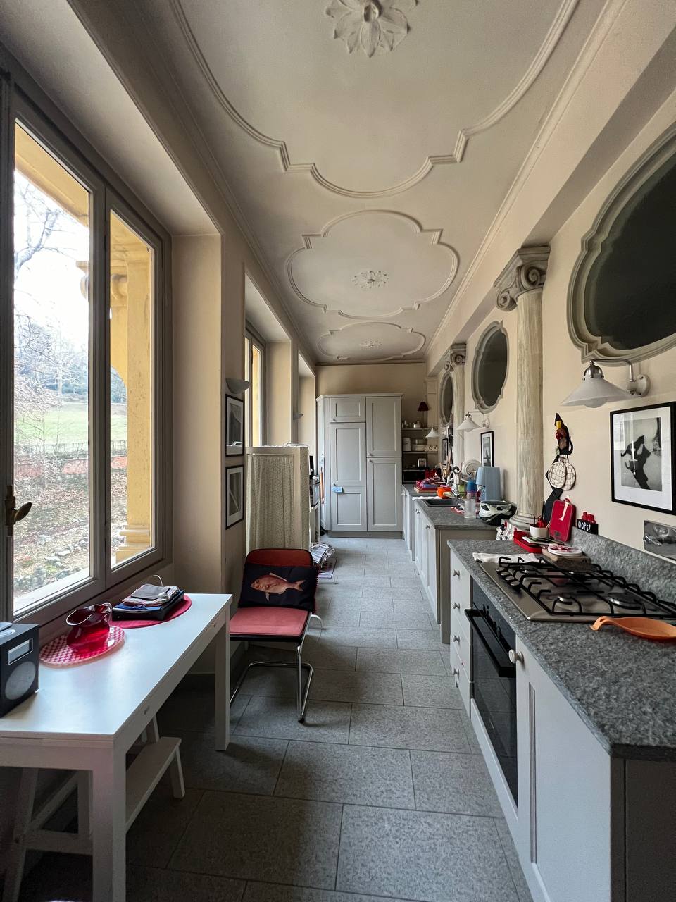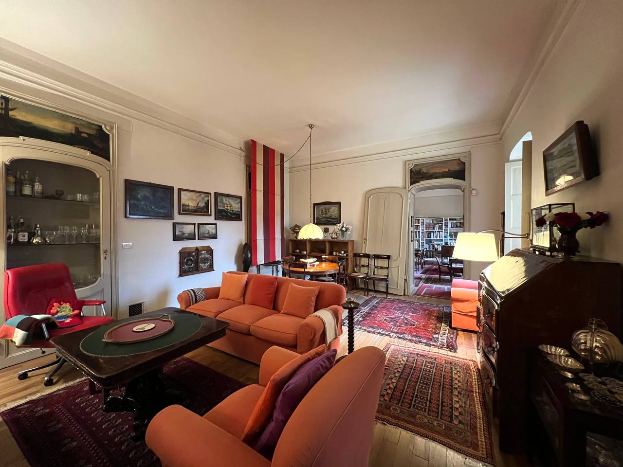 Appartamento in villa ottocentesca in Corso Moncalieri 167, nella precollina torinese, all'altezza del Ponte Isabella, al secondo piano senza ascensore, composta da ingresso, salone doppio, cucina arredata, due camere da letto, due bagni completi e disimpegni con armadi a muro. L'alloggio viene affittato arredato solo di cucina e armadi a muro, il mobilio presente in foto verrà rimosso in quanto appartenente all'inquilino uscente. L'alloggio sarà disponibile a partire da marzo. Contesto signorile e tranquillo, immerso nel verde della proprietà. E' possibile passeggiare nel parco o fermarvisi per la lettura di un libro, ma non è utilizzabile per barbeque e/o cene e feste. Presenza di due posti auto esterni inclusi nel prezzo. Canone mensile pari a 1.800,00 euro (spese condominiali e riscaldamento centralizzato esclusi).