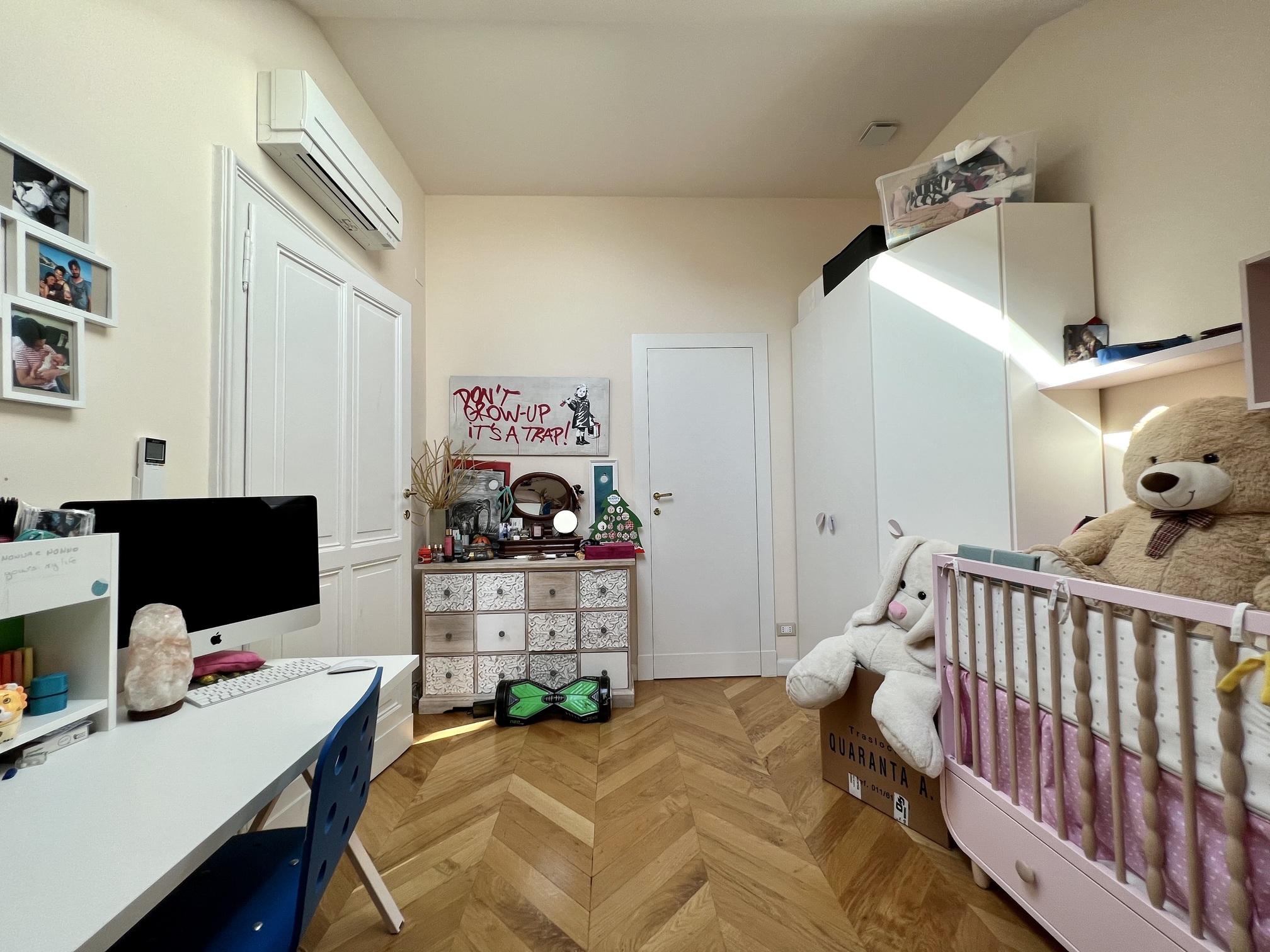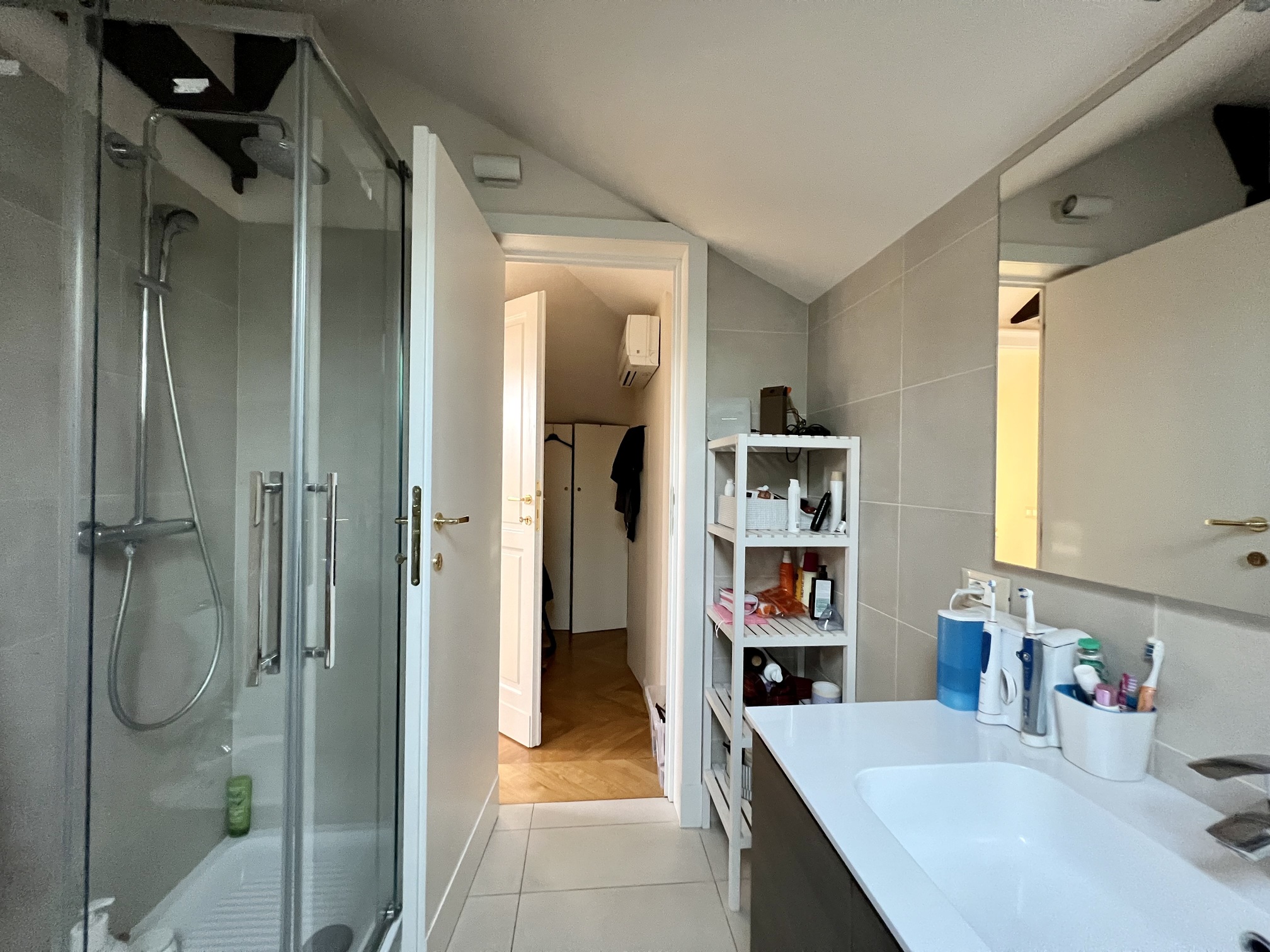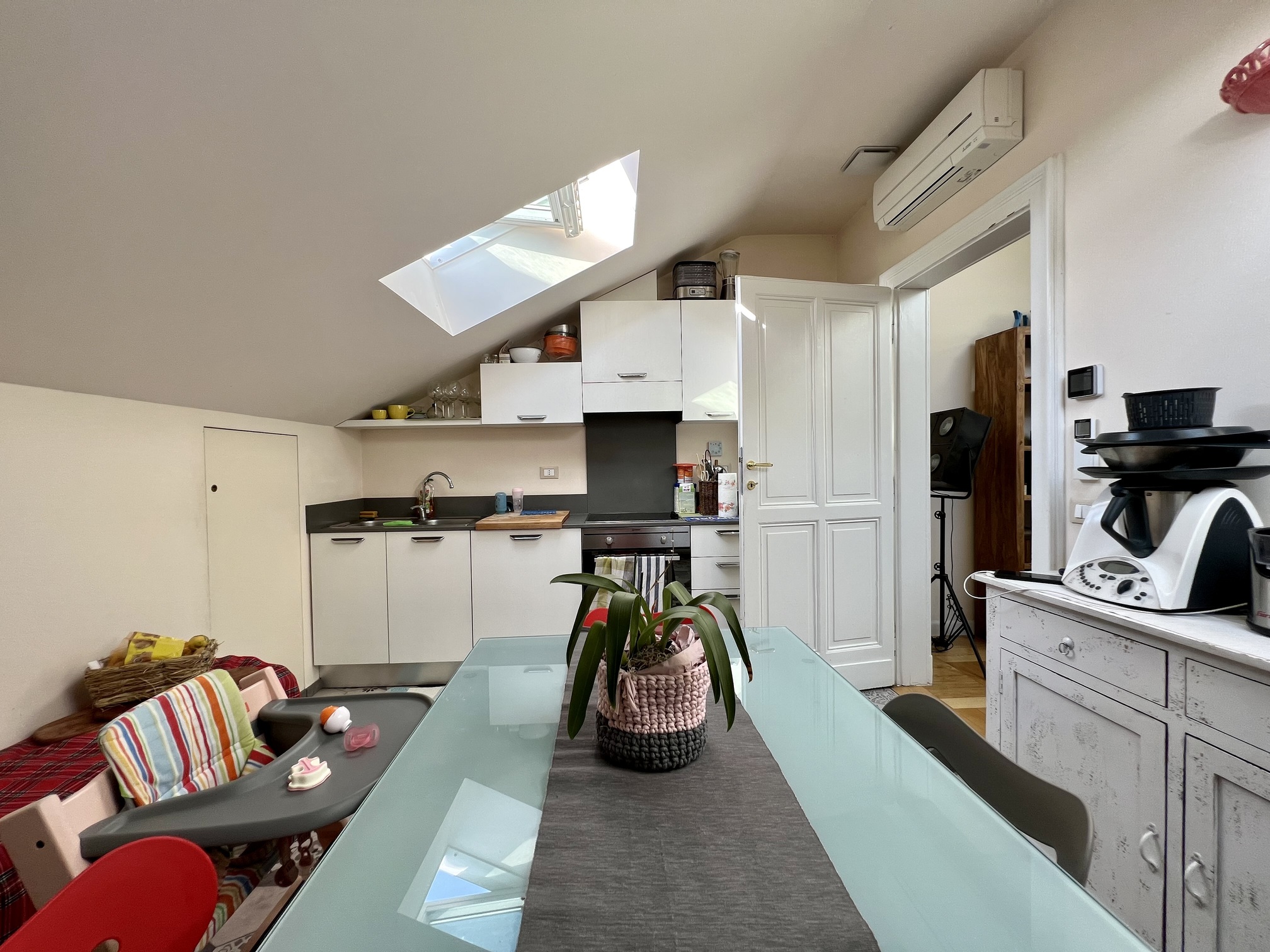 L’appartamento è stato oggetto di una recente ristrutturazione e si presenta in ottime condizioni, con pavimenti in parquet nuovi, impianto elettrico a norma e impianto di climatizzazione. Viene locato arredato esclusivamente di cucina e armadi a muro; gli arredi visibili in alcune fotografie appartengono all’inquilino uscente. Classe energetica elevata.