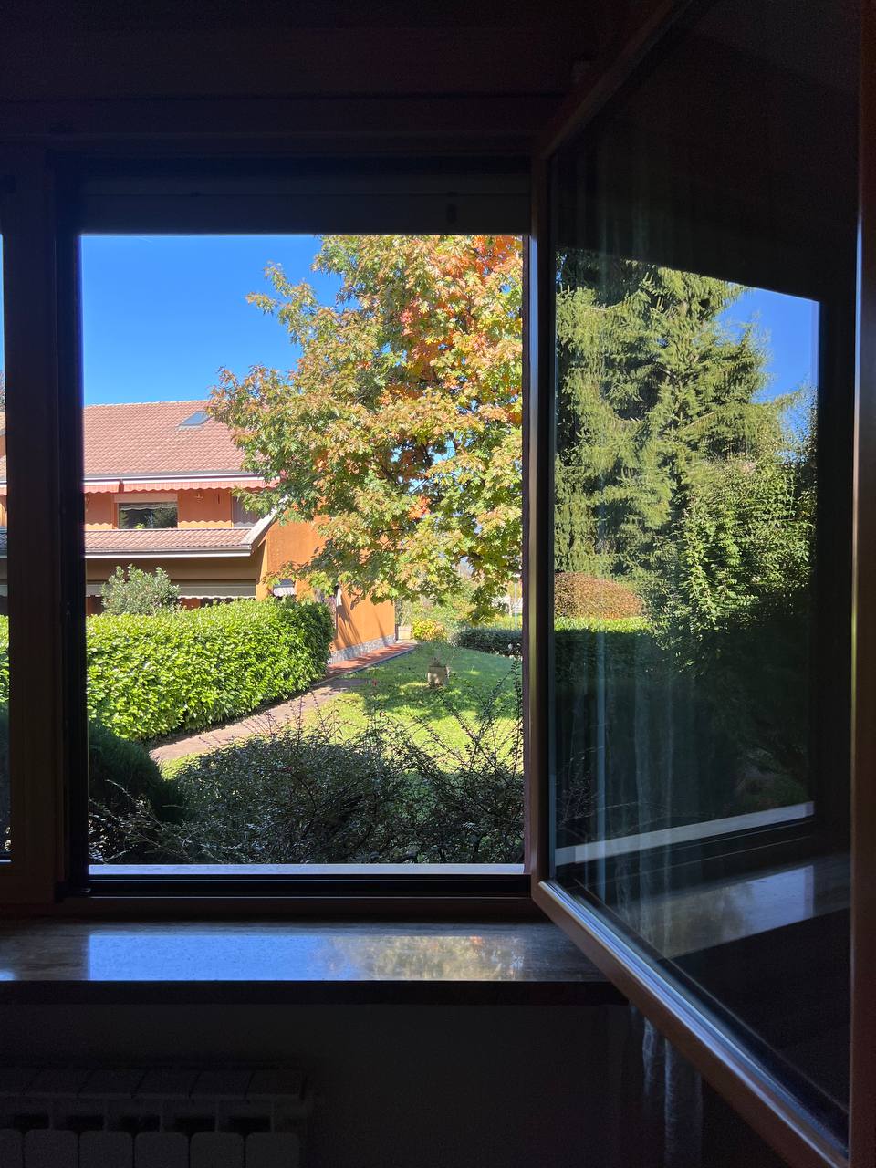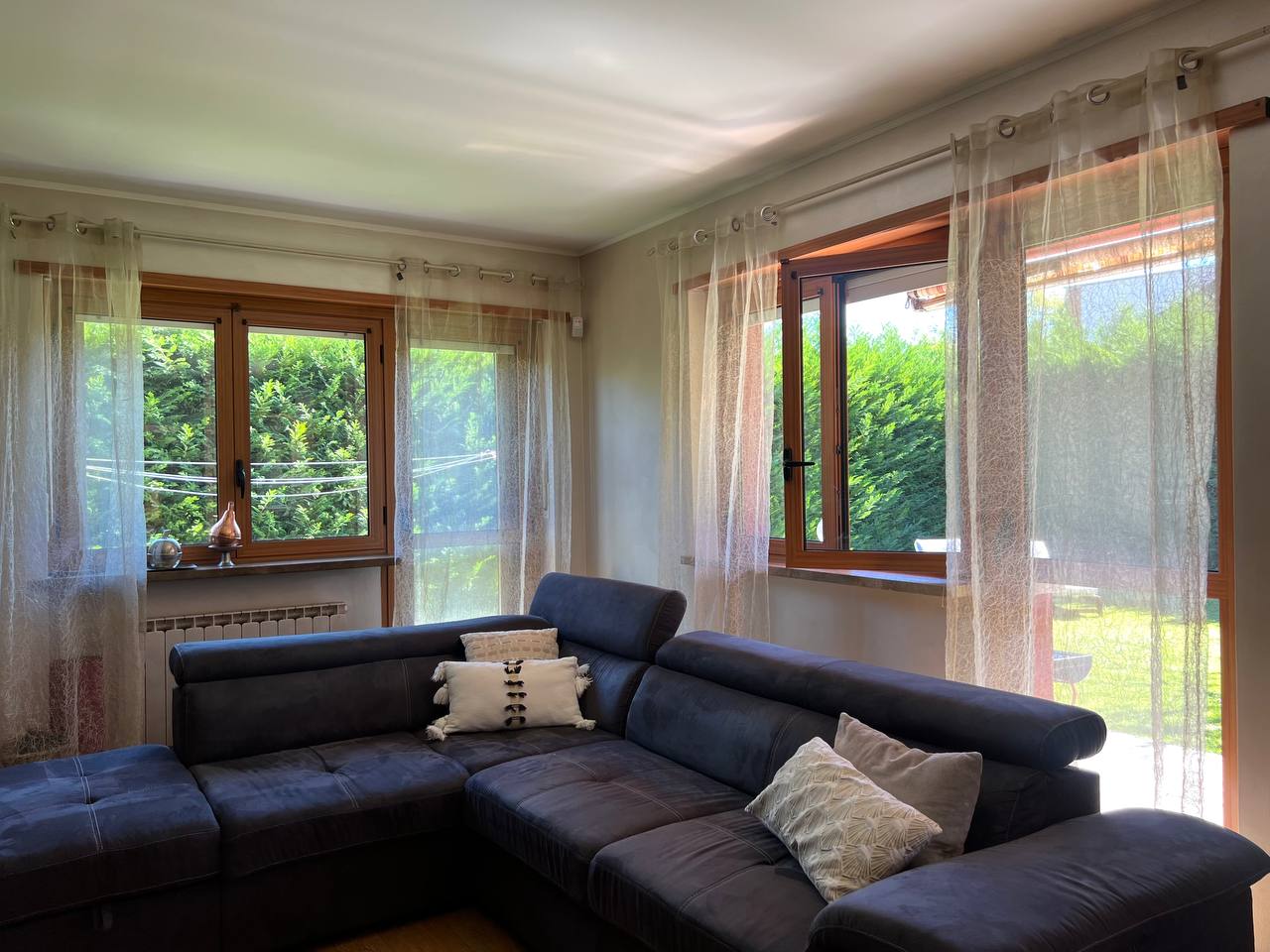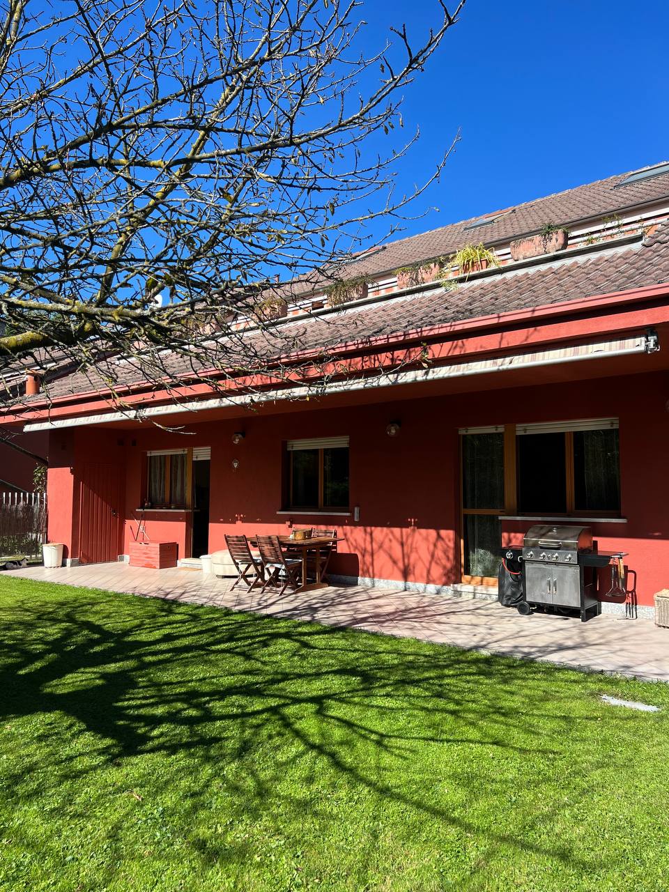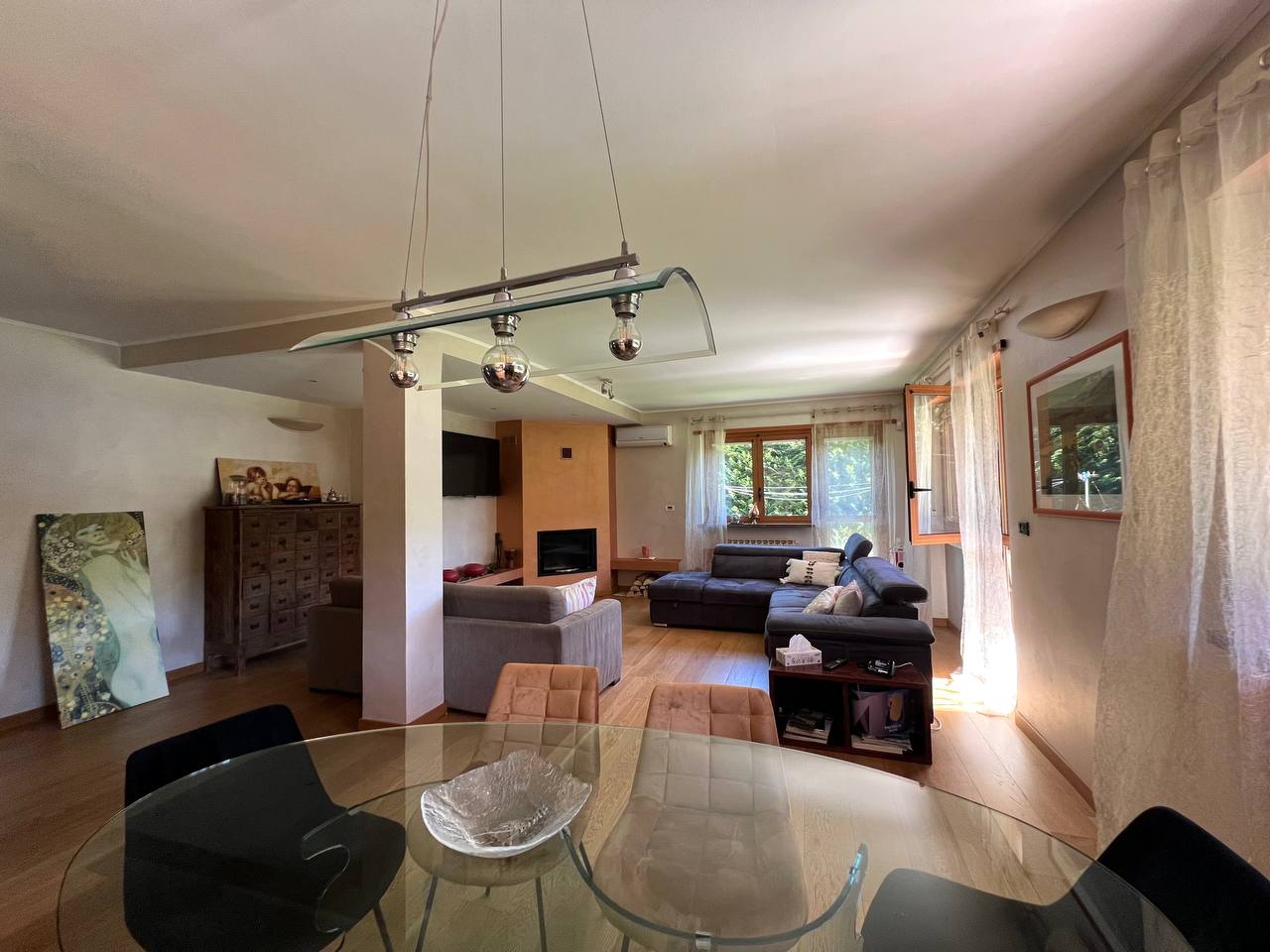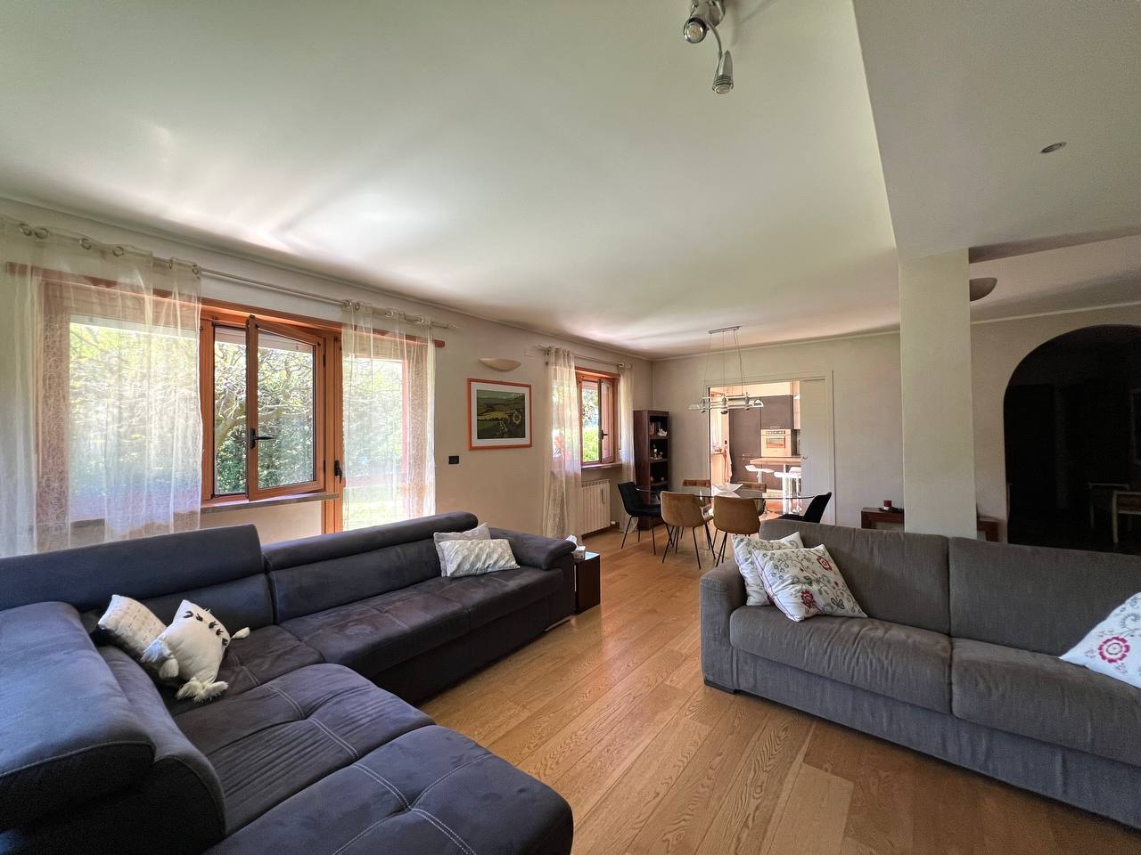 Nel complesso residenziale immerso nel verde Le Fronde a Buttigliera Alta, in villetta libera su 4 lati, appartamento con giardino e box doppio in villa bifamigliare, un appartamento posto al piano terra con giardino di pertinenza e box auto. L'appartamento di circa 180 mq, con giardino frontale di circa 250 mq, è così composto: ingresso semiliving che immette nel un salone di generose dimensioni con camino e con ampie finestre che danno l'accesso al giardino esposto a sud/ovest, cucina abitabile, separata solo da una quinta e porta scrigno, oltre zona notte con tre camere da letto, due bagni finestrati ed un disimpegno attualmente completamente armadiato. Al piano interrato la proprietà è completata da un box auto doppio per due auto parallele, con una comoda zona di manovra antistante. L'appartamento è stato completamente ristrutturato nel 2011: è completamente pavimentato in parquet di rovere a listoni di generose dimensioni, è dotato di impianto di allarme e di impianto di condizionamento ed il camino è dotato di impianto di ventilazione tramite aria calda, sia nella zona giorno, dove è posizionato, che nella zona notte. L'utilizzo del camino permette di abbattere il costo del riscaldamento che comunque è autonomo a gas. Il giardino è in uso esclusivo perpetuo. Il box è ubicato al piano interrato con accesso da rampa ed è doppio: son 27 mq, e può ospitare due auto parcheggiate in parellelo. Il complesso residenziale Le Fronde, è una realtà abitativa particolare, immersa nel verde di un ampio parco, pur essendo comodo ai servizi, ai trasporti pubblici e alle scuole: infatti i residenti possono usufruire del parco interno oltre che del proprio giardino, della fermata dei mezzi pubblici posta proprio all'ingresso del complesso, di ampi parcheggi posti nelle vicinanze delle abitazioni a disposizione di amici e visitatori, dell'accesso diretto dal complesso alle scuole materne, elementari e medie e dell'accesso diretto al Golf Club, dotato anche di ristorante. L'autostrada Torino-Bardonecchia (traforo del Frejus) e la tangenziale non distano più di 3 km: il centro di Torino si raggiunge in 1/2 ora mentre la spesa quotidiana si può fare sia nel paese di Buttigliera che di Avigliana che sono raggiungibili in 10 min di auto; entrambe sono dotate di mercati del fresco, supermercati ed ogni tipo di attività commerciale.
