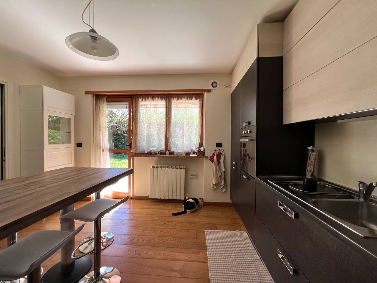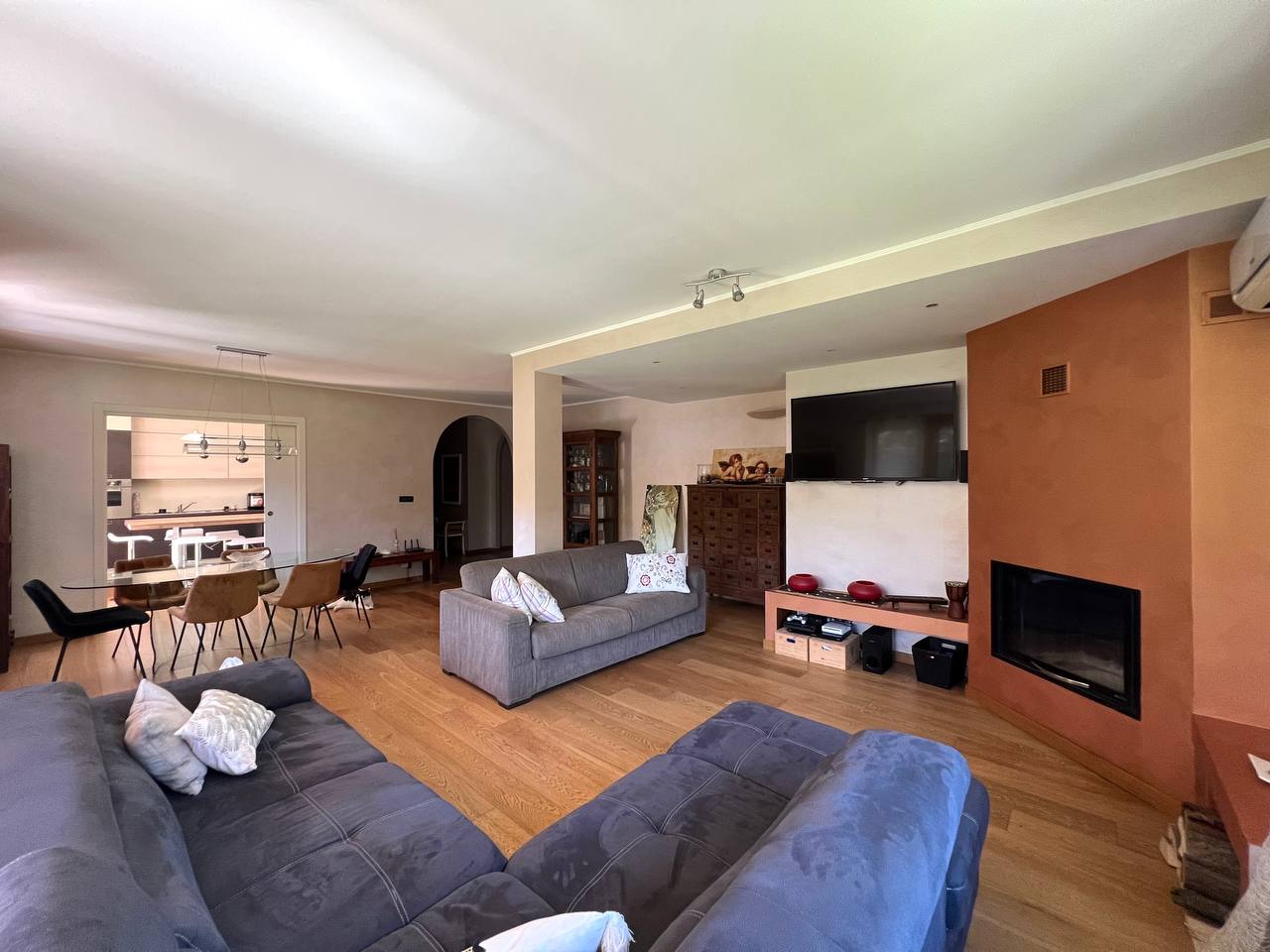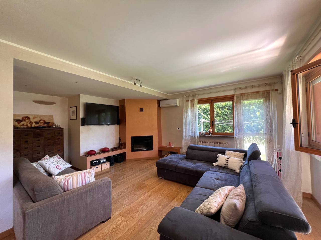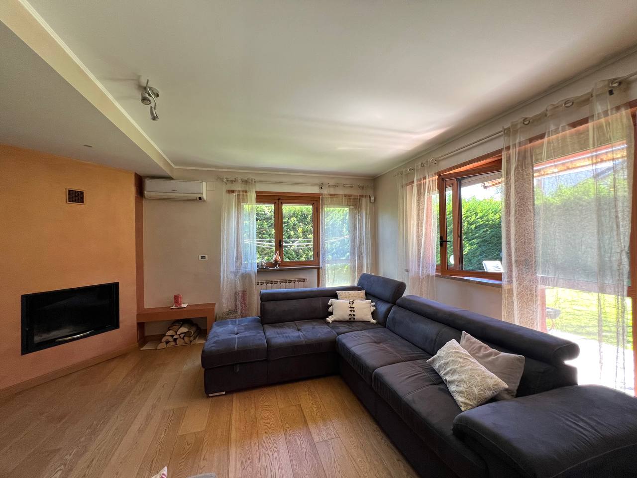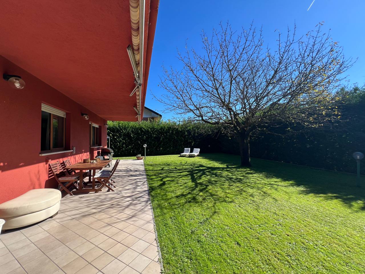 Nel complesso residenziale immerso nel verde Le Fronde a Buttigliera Alta, in villetta libera su 4 lati, appartamento con giardino e box doppio in villa bifamigliare, un appartamento posto al piano terra con giardino di pertinenza e box auto. L'appartamento di circa 180 mq, con giardino frontale di circa 250 mq, è così composto: ingresso semiliving che immette nel un salone di generose dimensioni con camino e con ampie finestre che danno l'accesso al giardino esposto a sud/ovest, cucina abitabile, separata solo da una quinta e porta scrigno, oltre zona notte con tre camere da letto, due bagni finestrati ed un disimpegno attualmente completamente armadiato. Al piano interrato la proprietà è completata da un box auto doppio per due auto parallele, con una comoda zona di manovra antistante. L'appartamento è stato completamente ristrutturato nel 2011: è completamente pavimentato in parquet di rovere a listoni di generose dimensioni, è dotato di impianto di allarme e di impianto di condizionamento ed il camino è dotato di impianto di ventilazione tramite aria calda, sia nella zona giorno, dove è posizionato, che nella zona notte. L'utilizzo del camino permette di abbattere il costo del riscaldamento che comunque è autonomo a gas. Il giardino è in uso esclusivo perpetuo. Il box è ubicato al piano interrato con accesso da rampa ed è doppio: son 27 mq, e può ospitare due auto parcheggiate in parellelo. Il complesso residenziale Le Fronde, è una realtà abitativa particolare, immersa nel verde di un ampio parco, pur essendo comodo ai servizi, ai trasporti pubblici e alle scuole: infatti i residenti possono usufruire del parco interno oltre che del proprio giardino, della fermata dei mezzi pubblici posta proprio all'ingresso del complesso, di ampi parcheggi posti nelle vicinanze delle abitazioni a disposizione di amici e visitatori, dell'accesso diretto dal complesso alle scuole materne, elementari e medie e dell'accesso diretto al Golf Club, dotato anche di ristorante. L'autostrada Torino-Bardonecchia (traforo del Frejus) e la tangenziale non distano più di 3 km: il centro di Torino si raggiunge in 1/2 ora mentre la spesa quotidiana si può fare sia nel paese di Buttigliera che di Avigliana che sono raggiungibili in 10 min di auto; entrambe sono dotate di mercati del fresco, supermercati ed ogni tipo di attività commerciale.