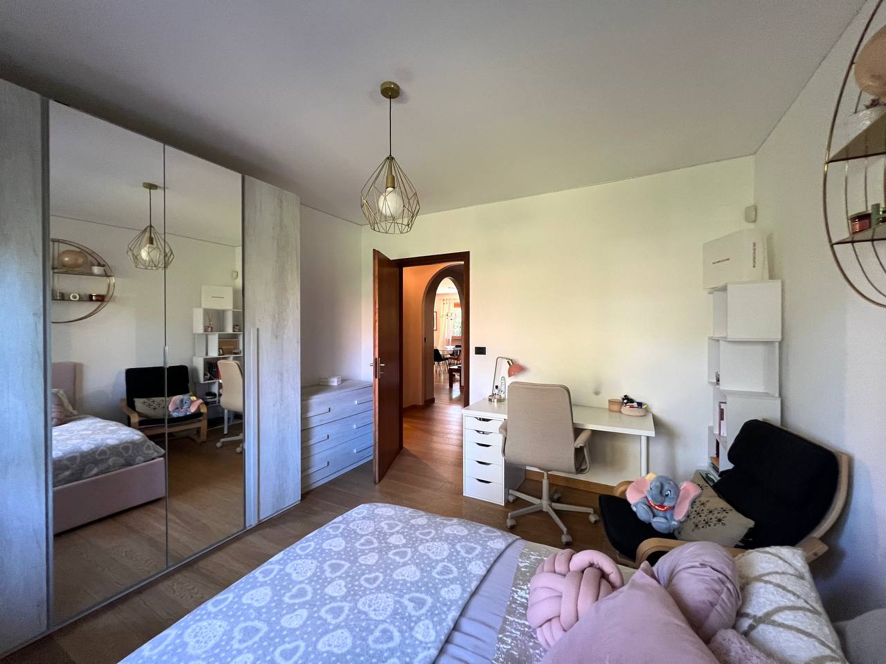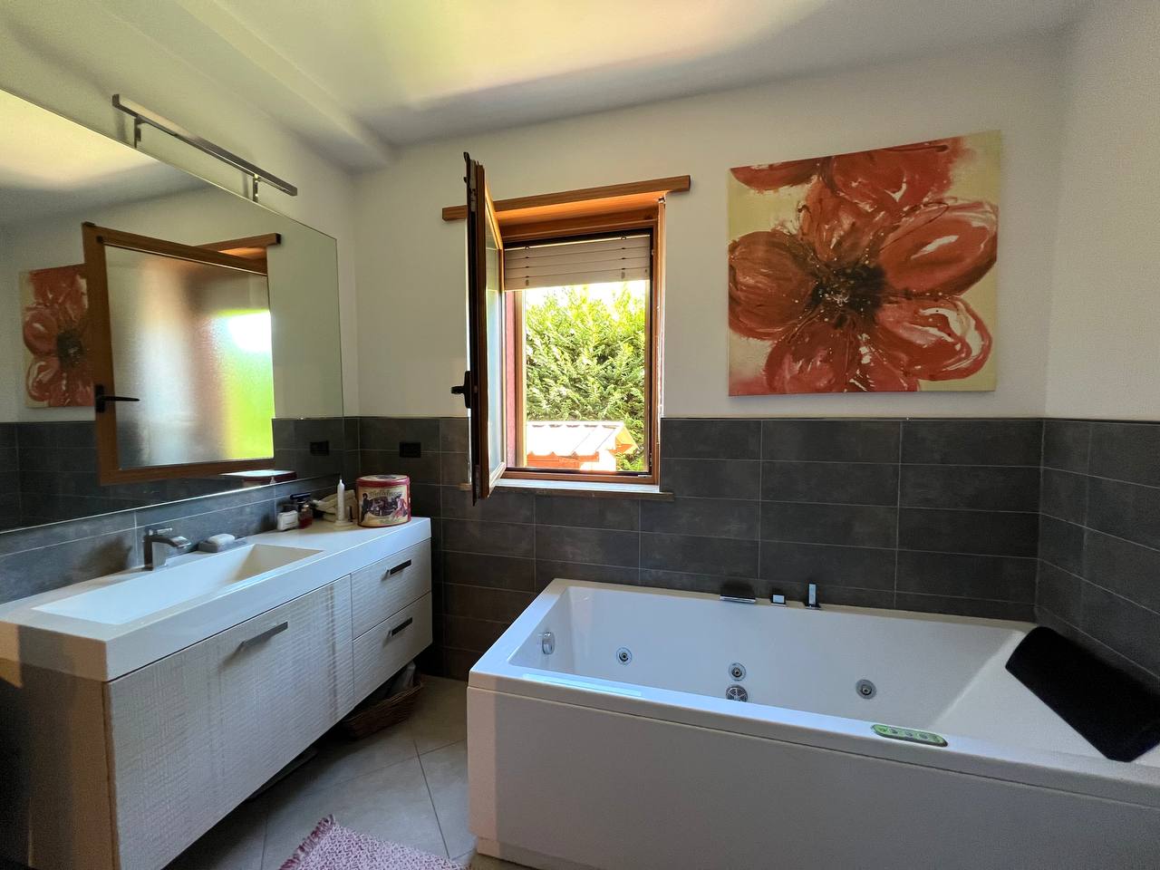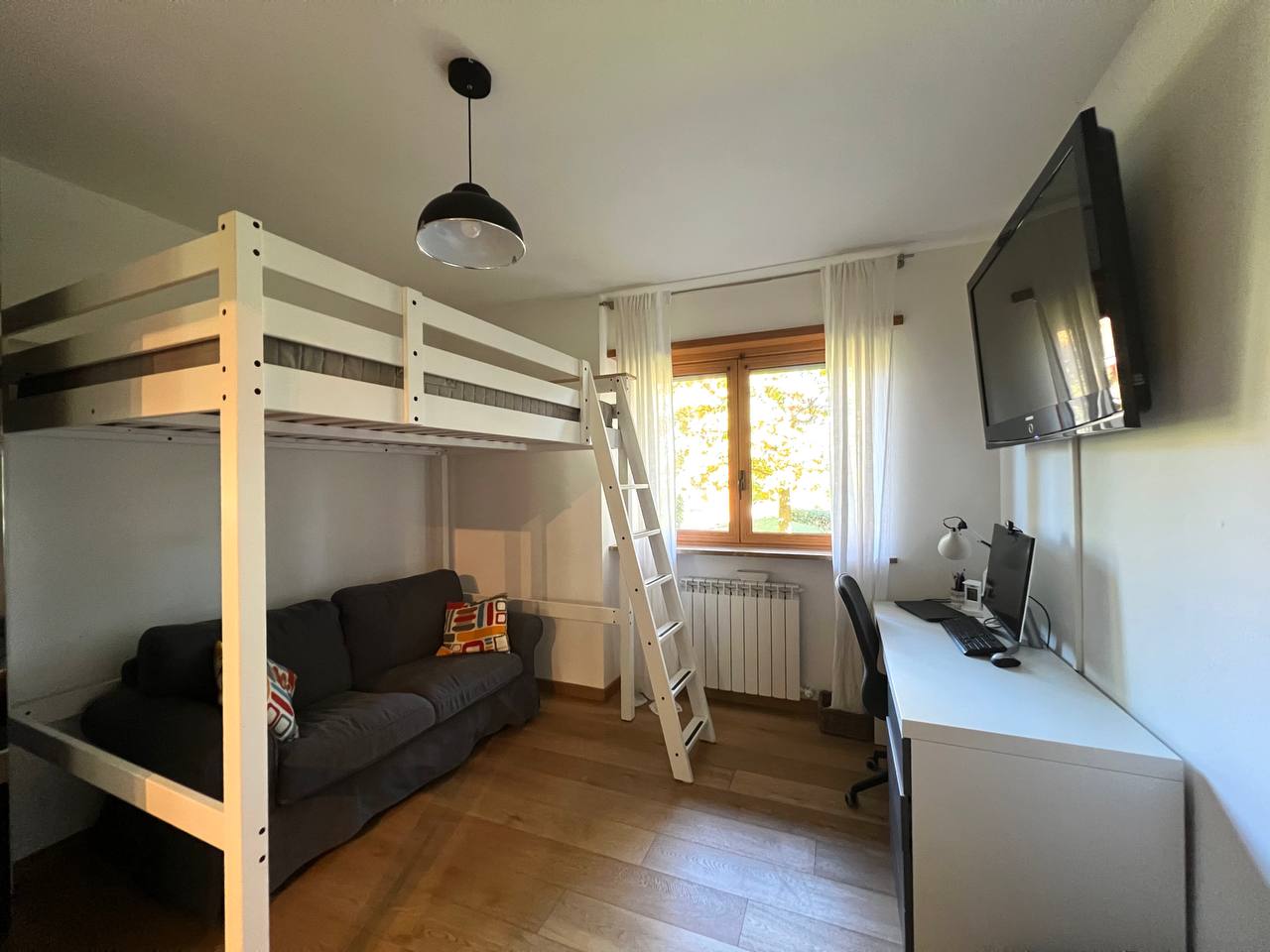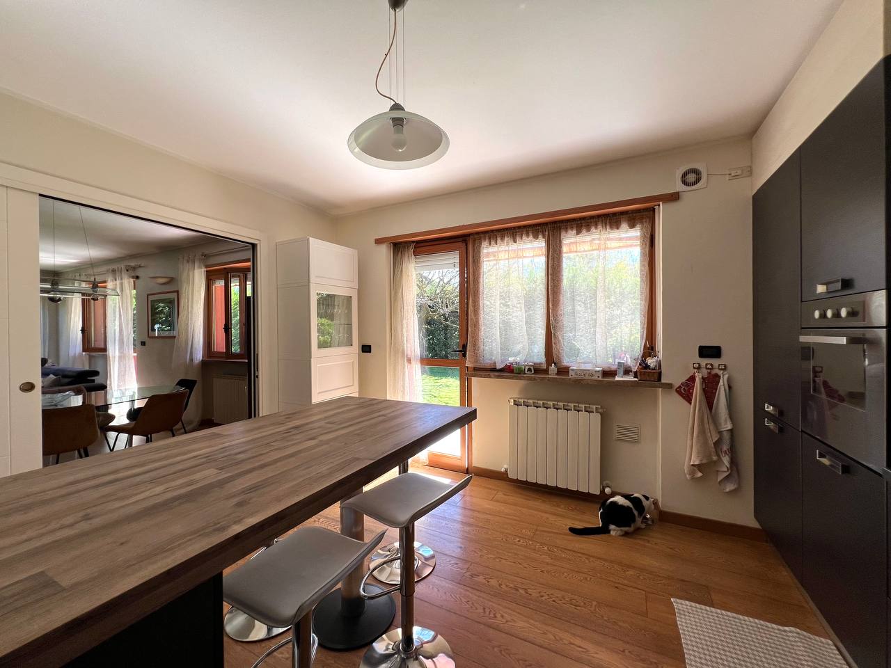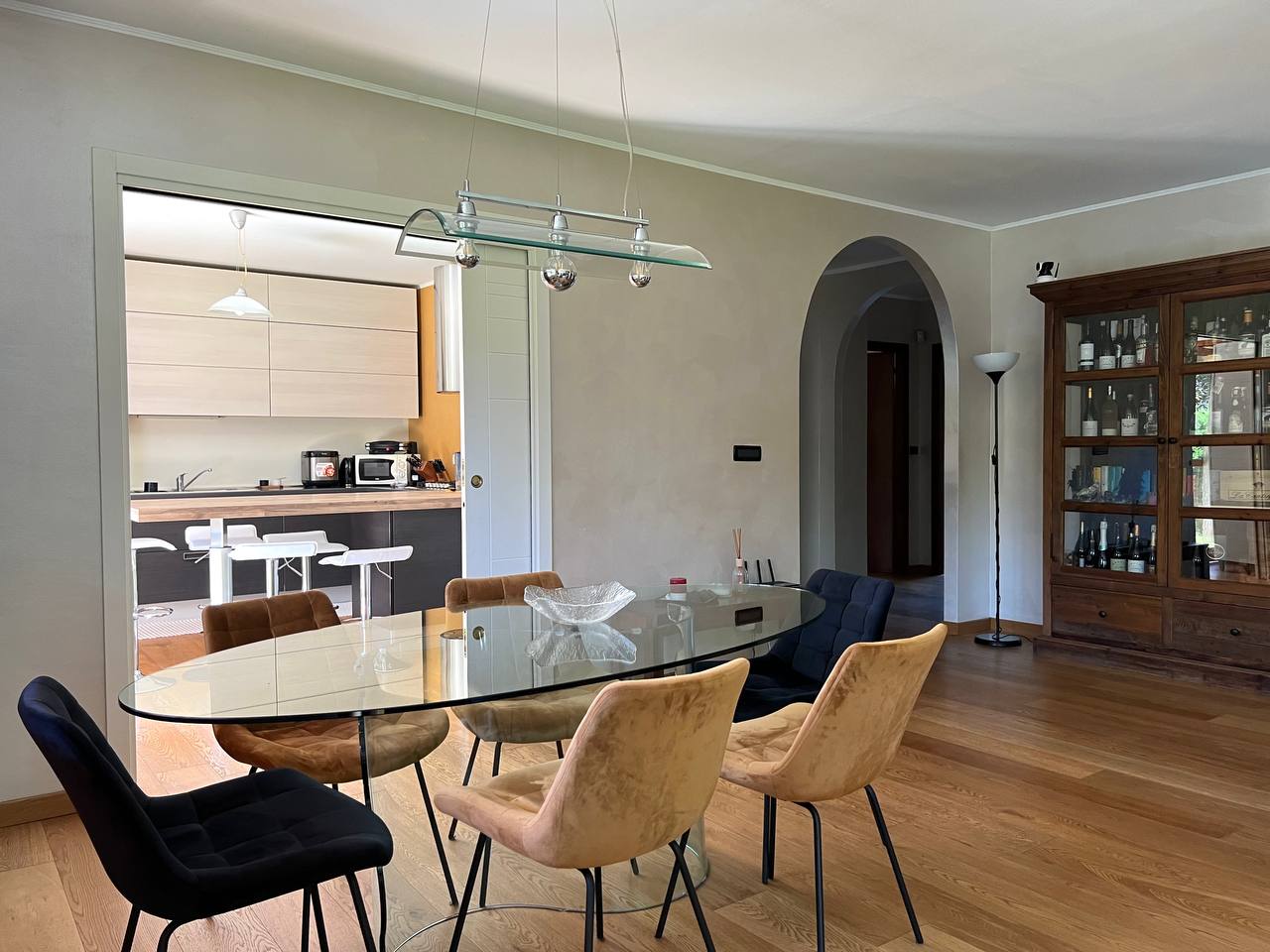 Nel complesso residenziale immerso nel verde Le Fronde a Buttigliera Alta, in villetta libera su 4 lati, appartamento con giardino e box doppio in villa bifamigliare, un appartamento posto al piano terra con giardino di pertinenza e box auto. L'appartamento di circa 180 mq, con giardino frontale di circa 250 mq, è così composto: ingresso semiliving che immette nel un salone di generose dimensioni con camino e con ampie finestre che danno l'accesso al giardino esposto a sud/ovest, cucina abitabile, separata solo da una quinta e porta scrigno, oltre zona notte con tre camere da letto, due bagni finestrati ed un disimpegno attualmente completamente armadiato. Al piano interrato la proprietà è completata da un box auto doppio per due auto parallele, con una comoda zona di manovra antistante. L'appartamento è stato completamente ristrutturato nel 2011: è completamente pavimentato in parquet di rovere a listoni di generose dimensioni, è dotato di impianto di allarme e di impianto di condizionamento ed il camino è dotato di impianto di ventilazione tramite aria calda, sia nella zona giorno, dove è posizionato, che nella zona notte. L'utilizzo del camino permette di abbattere il costo del riscaldamento che comunque è autonomo a gas. Il giardino è in uso esclusivo perpetuo. Il box è ubicato al piano interrato con accesso da rampa ed è doppio: son 27 mq, e può ospitare due auto parcheggiate in parellelo. Il complesso residenziale Le Fronde, è una realtà abitativa particolare, immersa nel verde di un ampio parco, pur essendo comodo ai servizi, ai trasporti pubblici e alle scuole: infatti i residenti possono usufruire del parco interno oltre che del proprio giardino, della fermata dei mezzi pubblici posta proprio all'ingresso del complesso, di ampi parcheggi posti nelle vicinanze delle abitazioni a disposizione di amici e visitatori, dell'accesso diretto dal complesso alle scuole materne, elementari e medie e dell'accesso diretto al Golf Club, dotato anche di ristorante. L'autostrada Torino-Bardonecchia (traforo del Frejus) e la tangenziale non distano più di 3 km: il centro di Torino si raggiunge in 1/2 ora mentre la spesa quotidiana si può fare sia nel paese di Buttigliera che di Avigliana che sono raggiungibili in 10 min di auto; entrambe sono dotate di mercati del fresco, supermercati ed ogni tipo di attività commerciale.