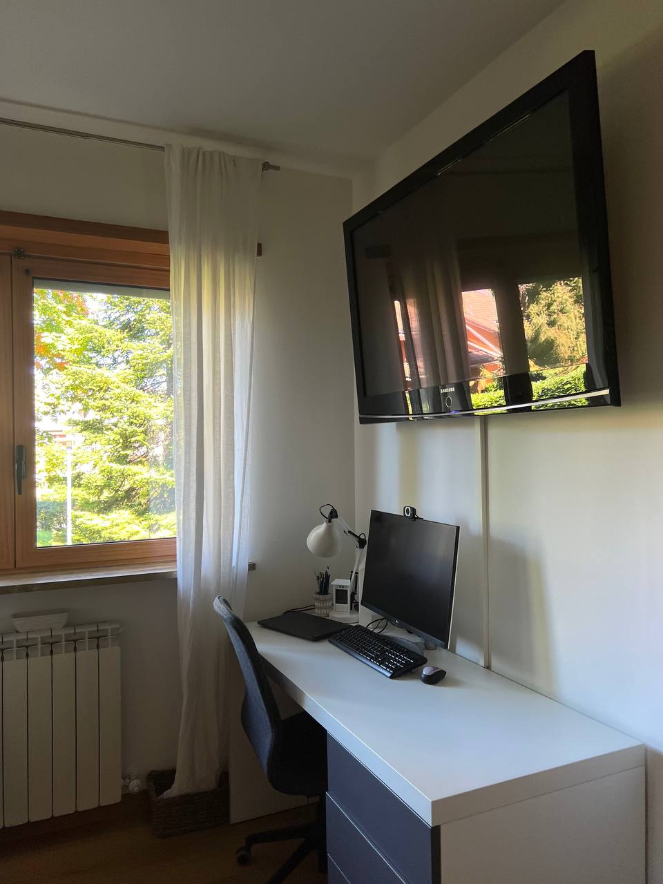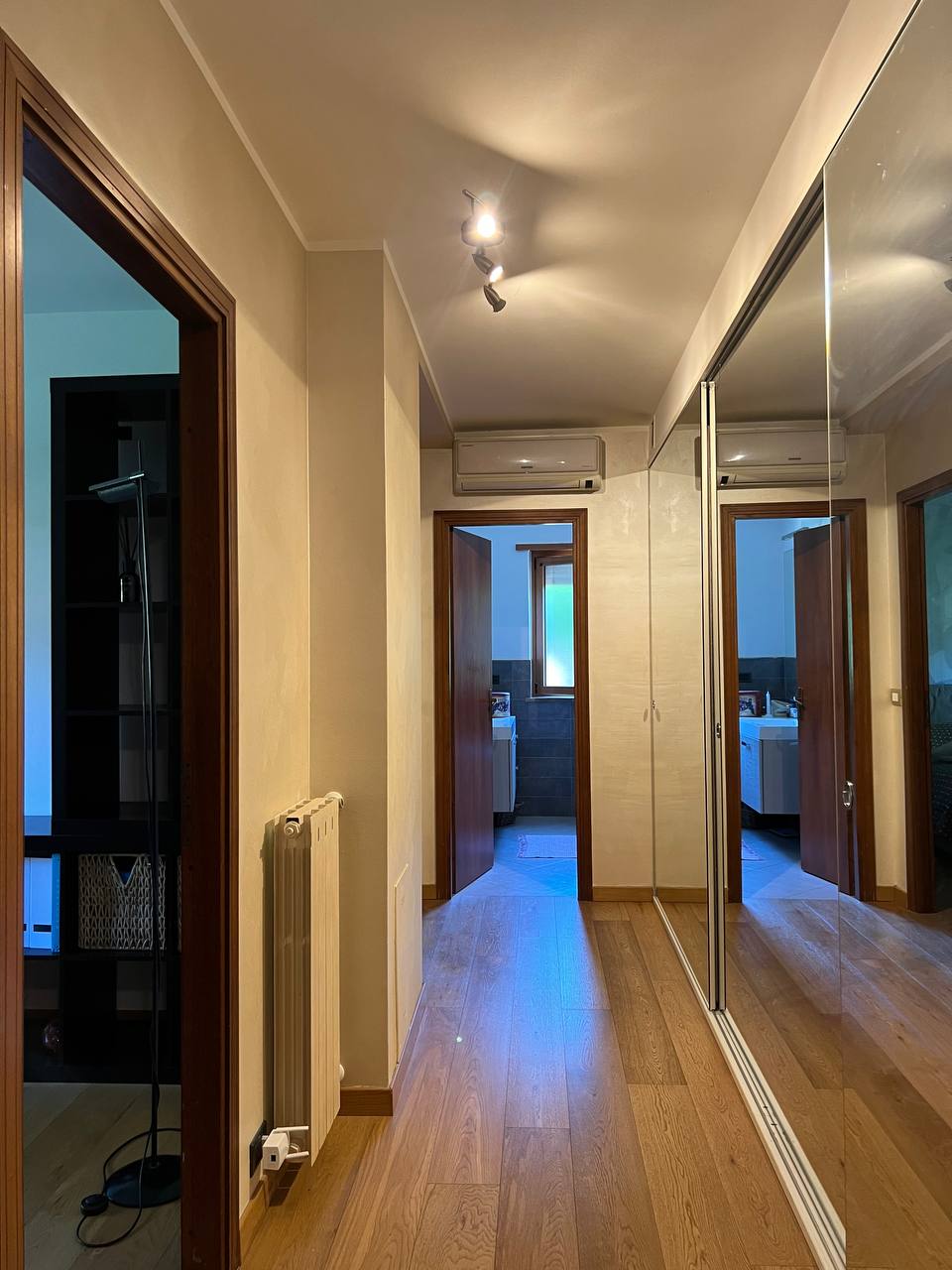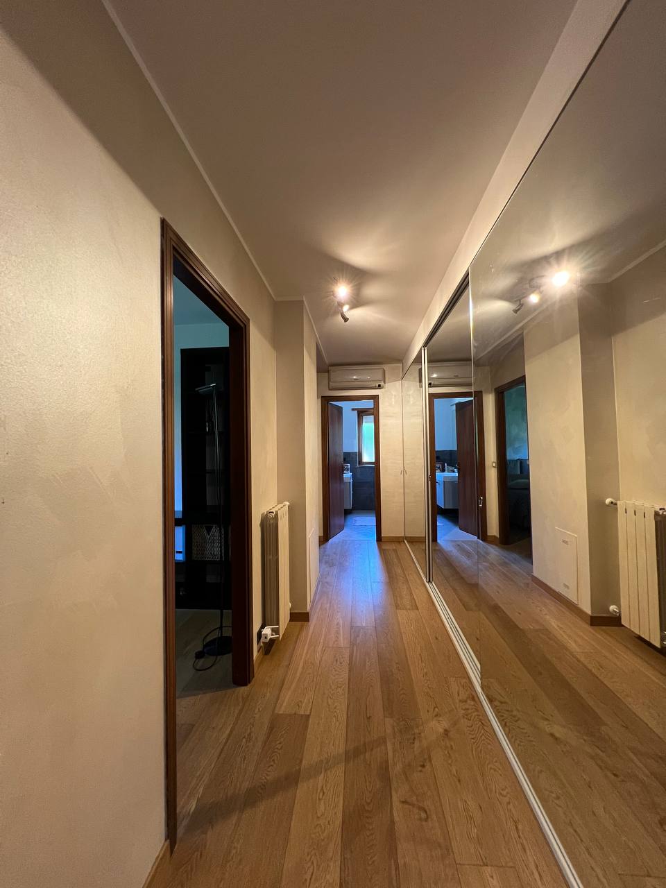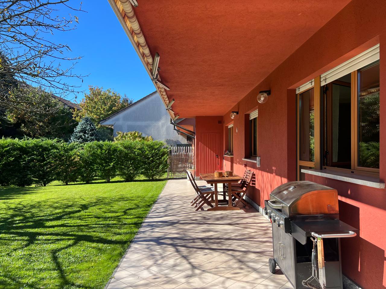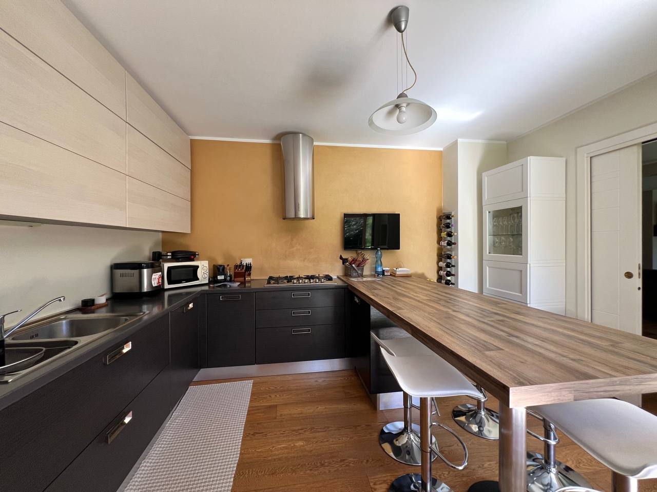 Nel complesso residenziale immerso nel verde Le Fronde a Buttigliera Alta, in villetta libera su 4 lati, appartamento con giardino e box doppio in villa bifamigliare, un appartamento posto al piano terra con giardino di pertinenza e box auto. L'appartamento di circa 180 mq, con giardino frontale di circa 250 mq, è così composto: ingresso semiliving che immette nel un salone di generose dimensioni con camino e con ampie finestre che danno l'accesso al giardino esposto a sud/ovest, cucina abitabile, separata solo da una quinta e porta scrigno, oltre zona notte con tre camere da letto, due bagni finestrati ed un disimpegno attualmente completamente armadiato. Al piano interrato la proprietà è completata da un box auto doppio per due auto parallele, con una comoda zona di manovra antistante. L'appartamento è stato completamente ristrutturato nel 2011: è completamente pavimentato in parquet di rovere a listoni di generose dimensioni, è dotato di impianto di allarme e di impianto di condizionamento ed il camino è dotato di impianto di ventilazione tramite aria calda, sia nella zona giorno, dove è posizionato, che nella zona notte. L'utilizzo del camino permette di abbattere il costo del riscaldamento che comunque è autonomo a gas. Il giardino è in uso esclusivo perpetuo. Il box è ubicato al piano interrato con accesso da rampa ed è doppio: son 27 mq, e può ospitare due auto parcheggiate in parellelo. Il complesso residenziale Le Fronde, è una realtà abitativa particolare, immersa nel verde di un ampio parco, pur essendo comodo ai servizi, ai trasporti pubblici e alle scuole: infatti i residenti possono usufruire del parco interno oltre che del proprio giardino, della fermata dei mezzi pubblici posta proprio all'ingresso del complesso, di ampi parcheggi posti nelle vicinanze delle abitazioni a disposizione di amici e visitatori, dell'accesso diretto dal complesso alle scuole materne, elementari e medie e dell'accesso diretto al Golf Club, dotato anche di ristorante. L'autostrada Torino-Bardonecchia (traforo del Frejus) e la tangenziale non distano più di 3 km: il centro di Torino si raggiunge in 1/2 ora mentre la spesa quotidiana si può fare sia nel paese di Buttigliera che di Avigliana che sono raggiungibili in 10 min di auto; entrambe sono dotate di mercati del fresco, supermercati ed ogni tipo di attività commerciale.