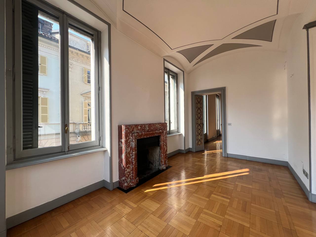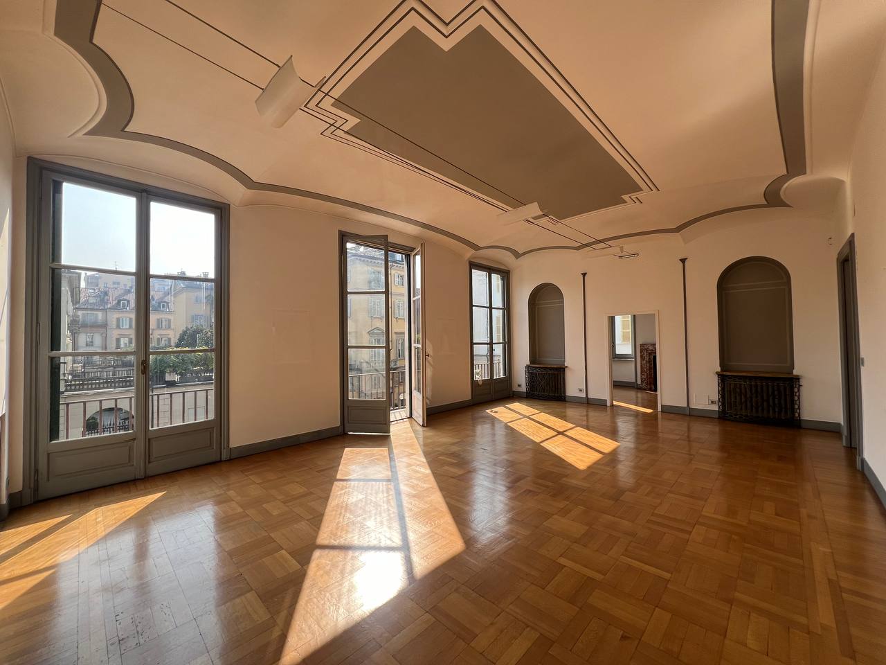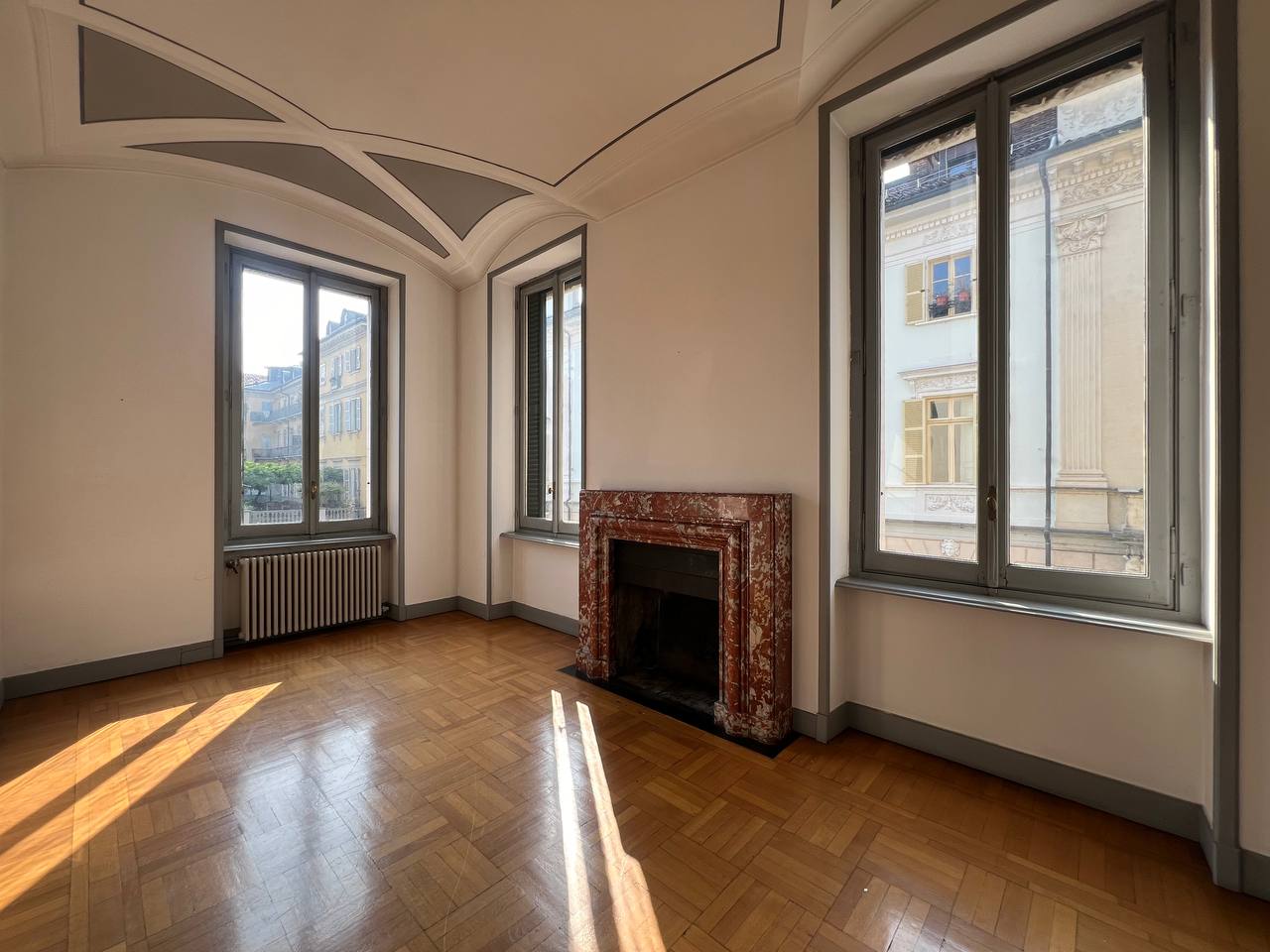 Appartamento di prestigio in Piazza Maria Teresa, una delle piazze di Torino che più richiama atmosfere parigine, con gli eleganti palazzi che circondano il verdissimo giardino, recentemente oggetto di interventi di riqualificazione. L'alloggio si trova al piano nobile di uno stabile signorile, accessibile tramite elegante scala privata, o tramite ascensore, composta da ingresso, salone, sala da pranzo, studio, cucina, due camere da letto, due bagni completi, oltre a un bagno di servizio e disimpegni. Pavimenti in parquet nelle camere e in marmo nelle scale e in ingresso. L'alloggio viene affittato semiarredato così come si vede in foto. Presenza di armadi a muro e cucina arredata. Gli infissi verranno sostituiti con serramenti dotati di doppio vetro. Stabile signorile con servizio portineria intera giornata. Zona centralissima molto rinomata.