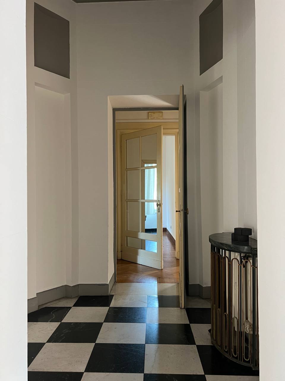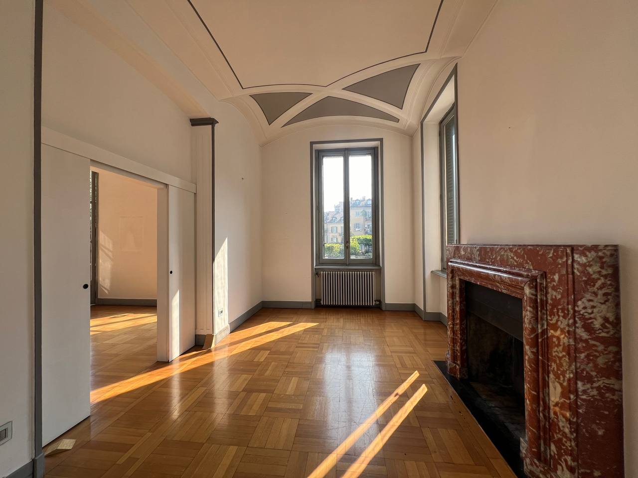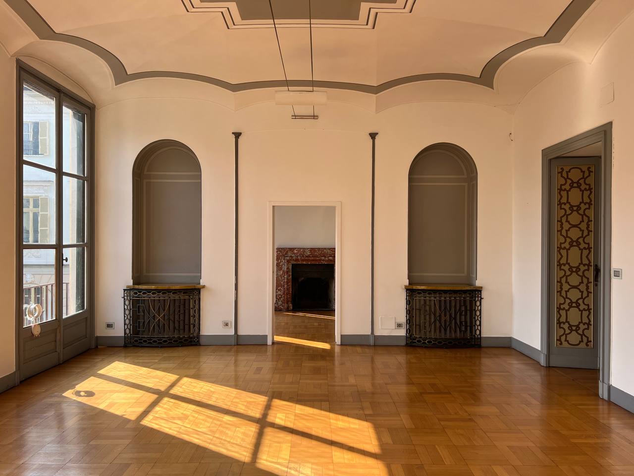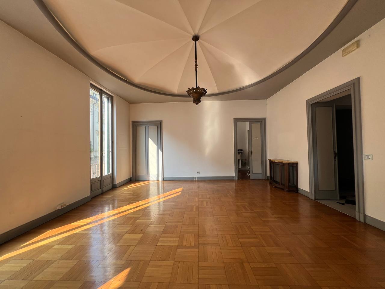 Appartamento di prestigio in Piazza Maria Teresa, una delle piazze di Torino che più richiama atmosfere parigine, con gli eleganti palazzi che circondano il verdissimo giardino, recentemente oggetto di interventi di riqualificazione. L'alloggio si trova al piano nobile di uno stabile signorile, accessibile tramite elegante scala privata, o tramite ascensore, composta da ingresso, salone, sala da pranzo, studio, cucina, due camere da letto, due bagni completi, oltre a un bagno di servizio e disimpegni. Pavimenti in parquet nelle camere e in marmo nelle scale e in ingresso. L'alloggio viene affittato semiarredato così come si vede in foto. Presenza di armadi a muro e cucina arredata. Gli infissi verranno sostituiti con serramenti dotati di doppio vetro. Stabile signorile con servizio portineria intera giornata. Zona centralissima molto rinomata.