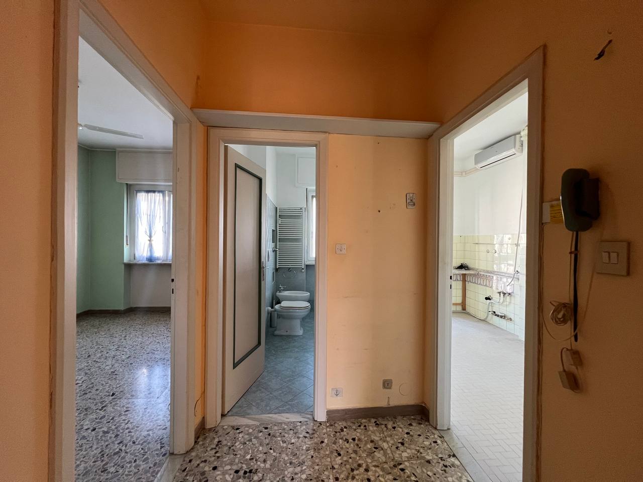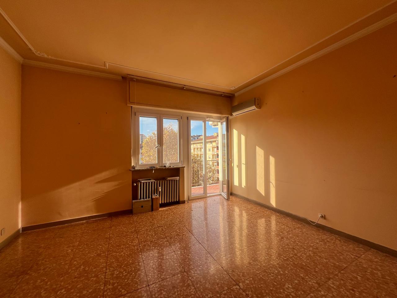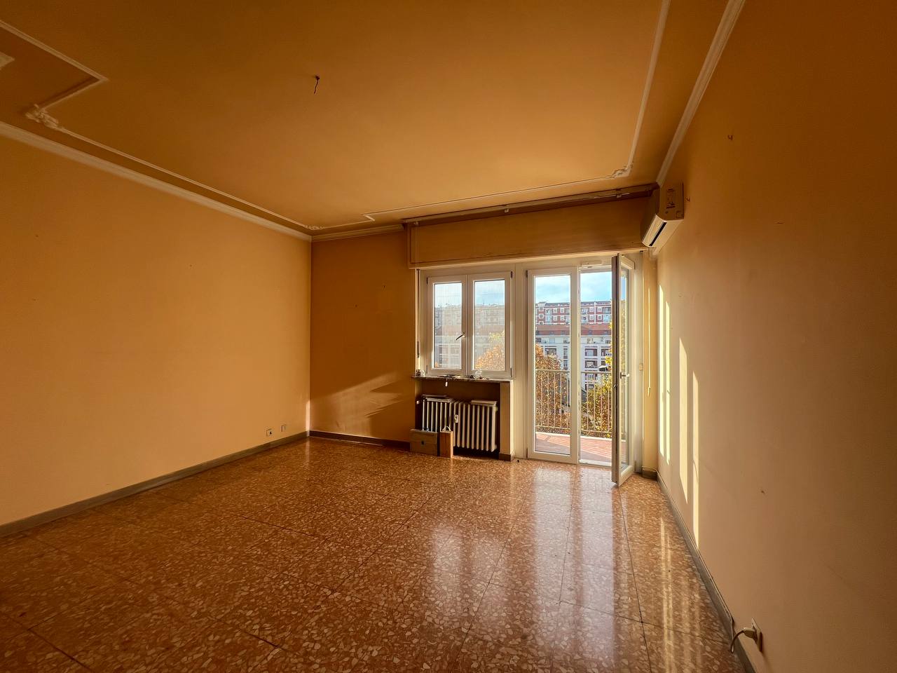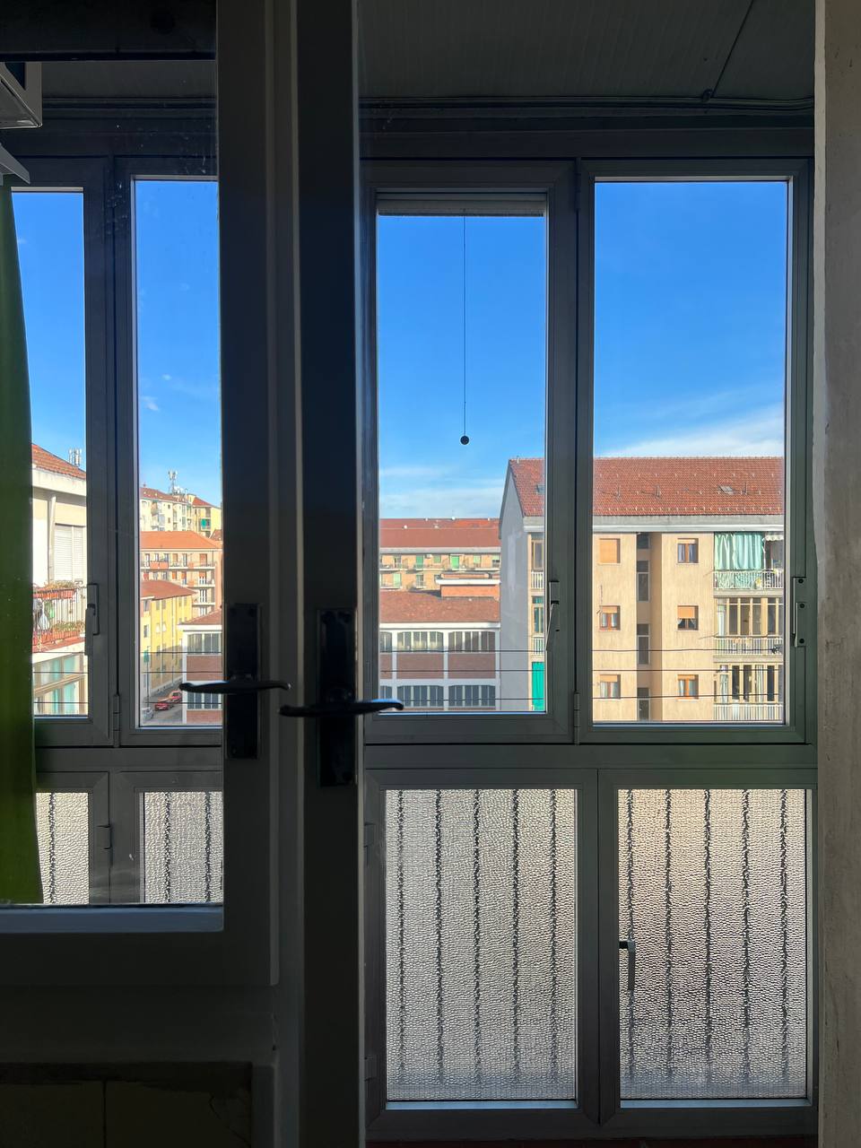 Appartamento sito al quinto piano composto di ingresso, soggiorno, cucina, due camere un bagno e un ripostiglio. Completa la proprietà una cantina al piano interrato. L'alloggio dispone di due balconi. Il piano alto e la doppia esposizione sud-nord rendono l'immobile particolarmente luminoso. Presenza di aria condizionata in soggiorno, una camera e cucina. Porta blindata. Infissi con doppio vetro lato strada e nella camera lato cortile. L'alloggio si trova in una zona di confine tra il quartiere Lingotto e il quartiere di Mirafiori Nord. Categoria catastale A/3, rendita catastale 916,71 euro. Possibilità di acquistare un box auto nel cortile interno dello stesso stabile aggiungendo 18.000, 00 euro. Le spese condominiali del box ammontano a 160,00 euro all'anno circa.